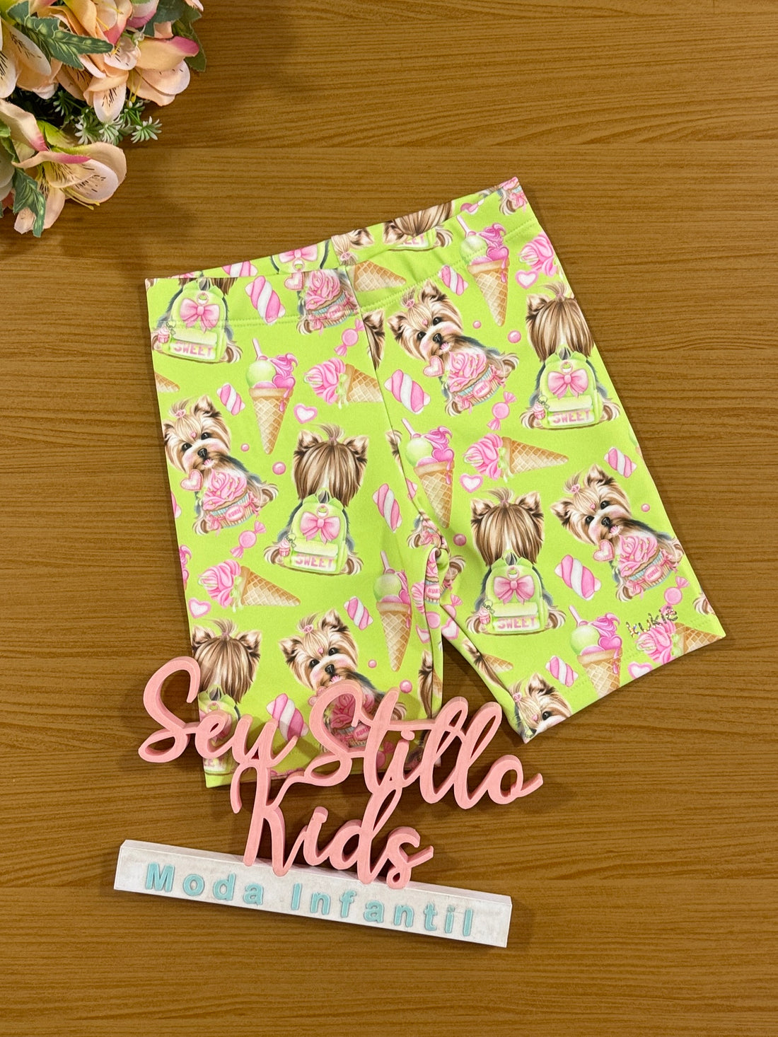 Shorts Infantil Kukie Verão Ciclista Verde Cachorrinha