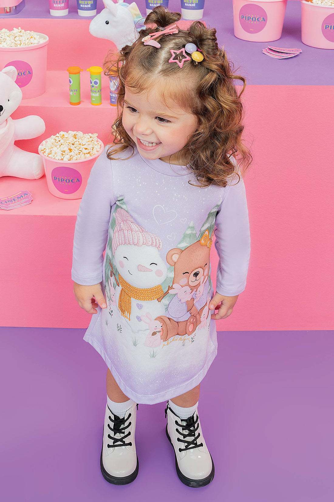 Vestido Infantil Kukie Baby Inverno Lilás Ursinho