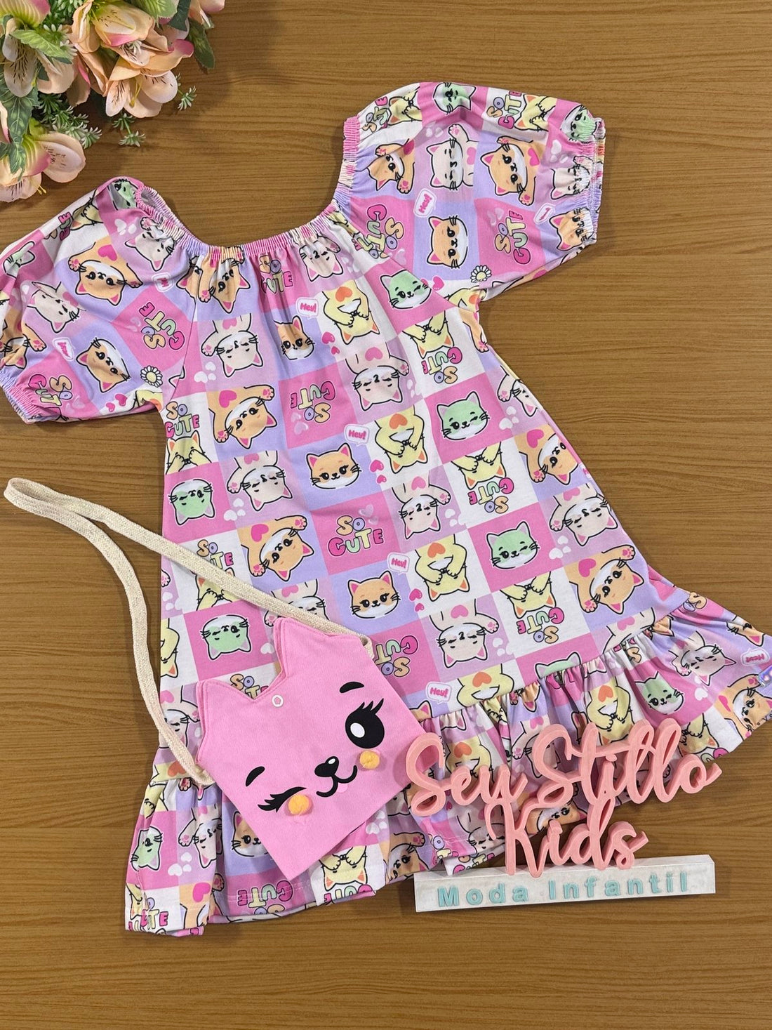 Vestido Infantil Cinti Verão Gatinha com Bolsinha