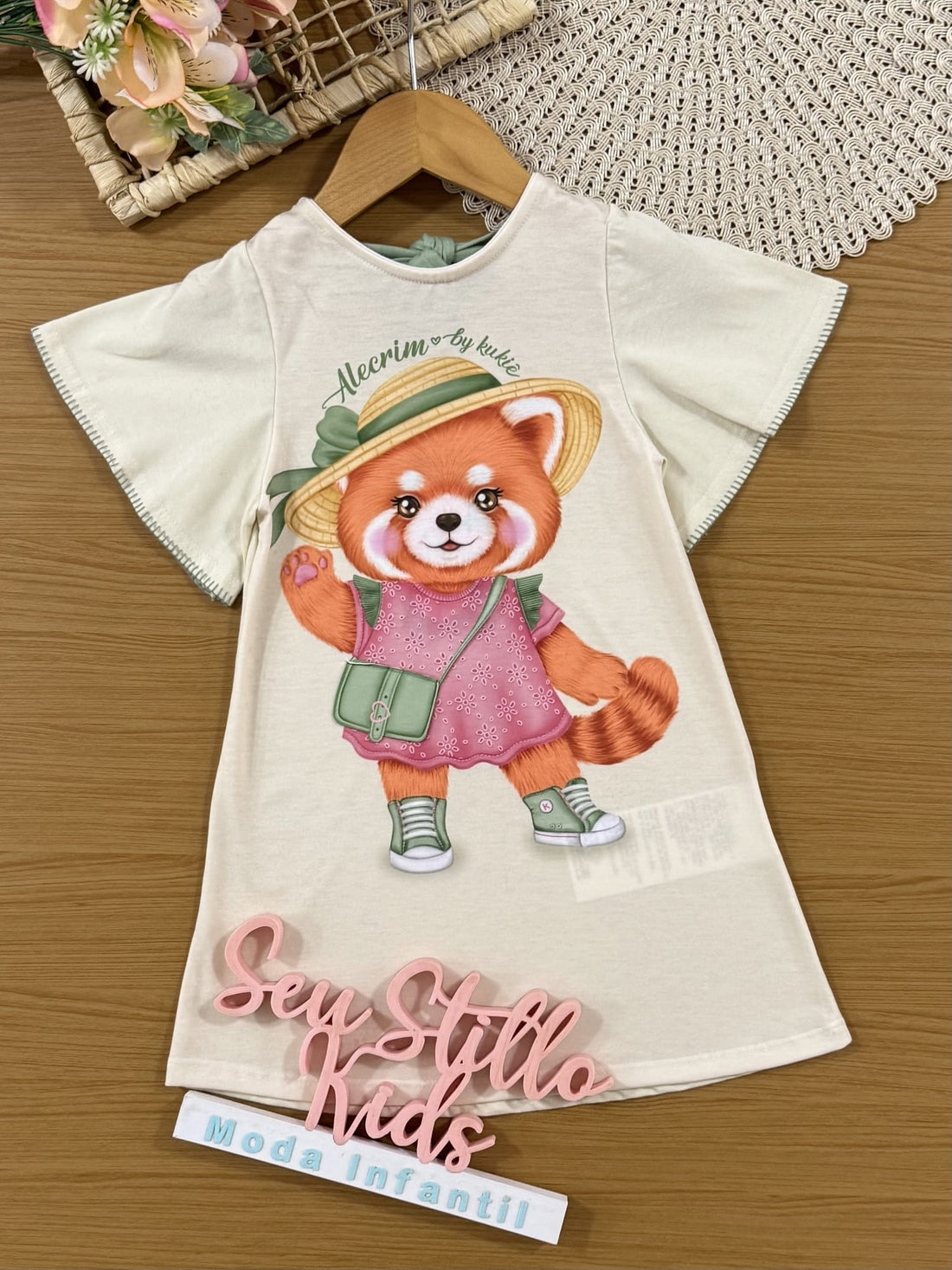 Vestido Infantil Kukiê Verão Bege Pandinha Vermelho
