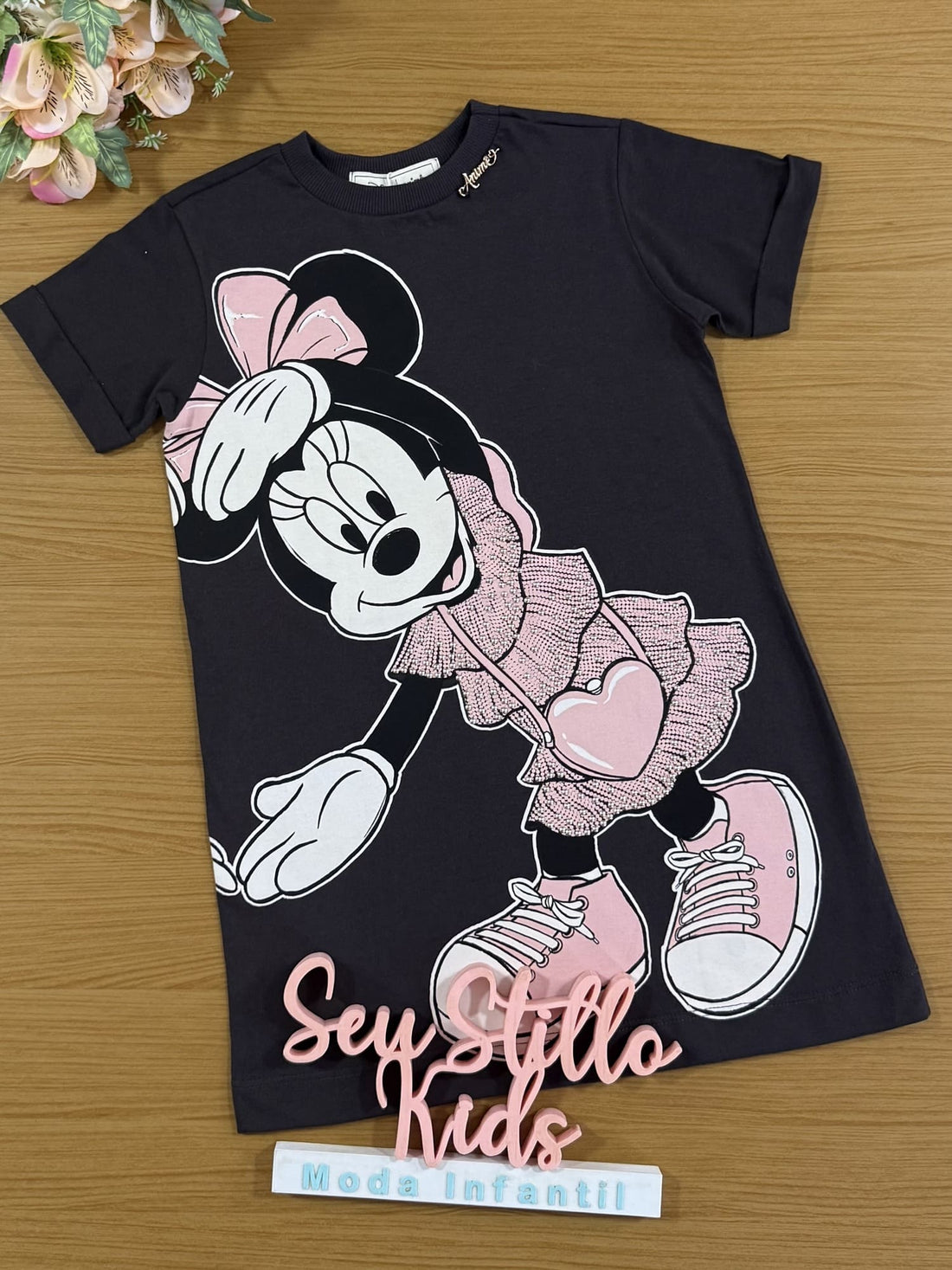 Vestido Infantil Animê Cinza Escuro Minnie e Margarida Disney