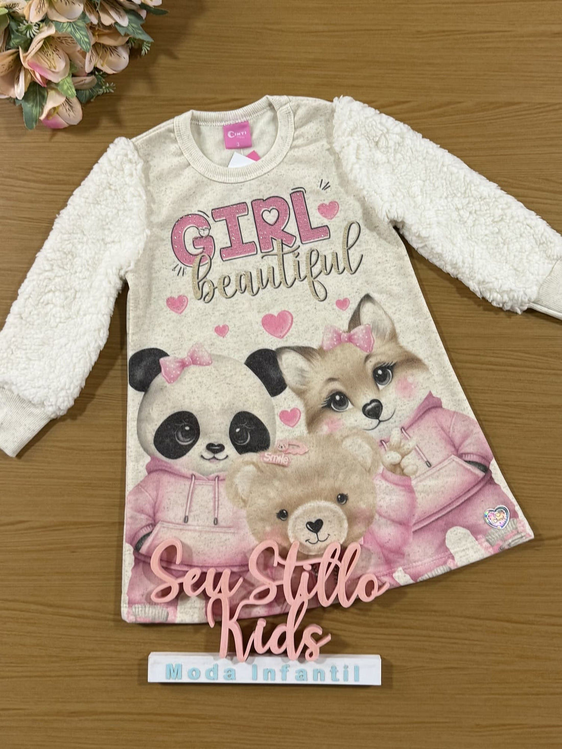 Vestido Infantil Cinti Inverno Off White Bichinhos Beautiful