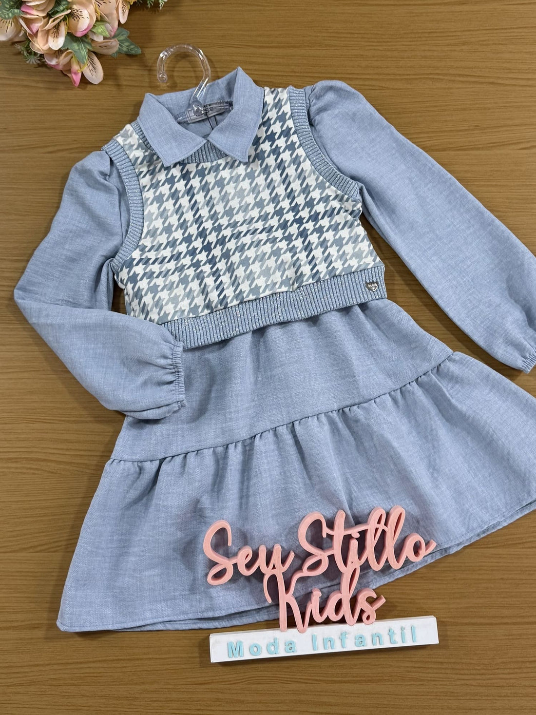 Vestido Infantil Kukiê Inverno Azul Claro com Colete