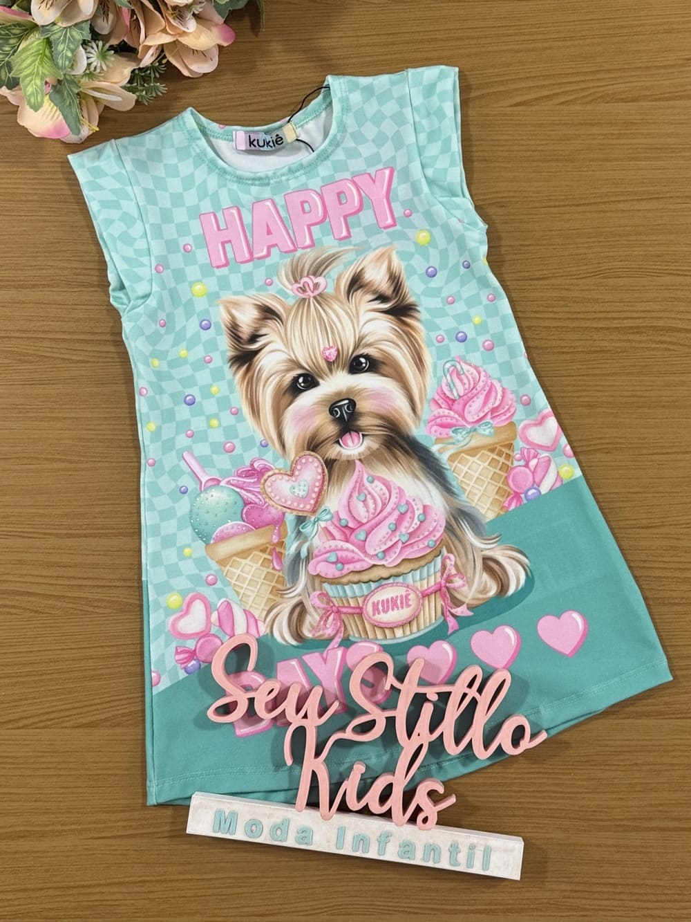 Vestido Infantil Kukie Verão Verde Cachorrinha Happy