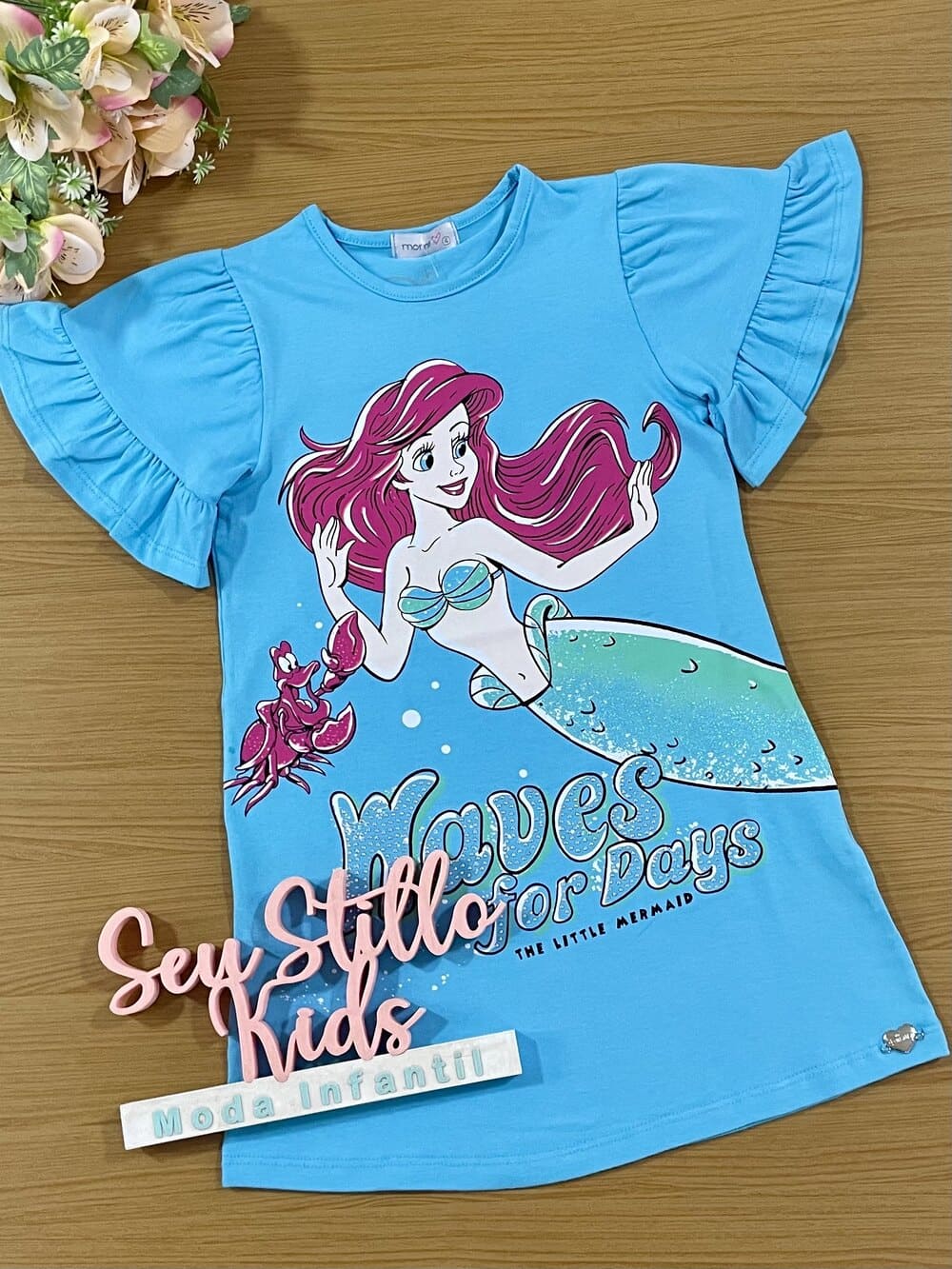 Vestido Infantil Momi Verão Azul Ariel Disney