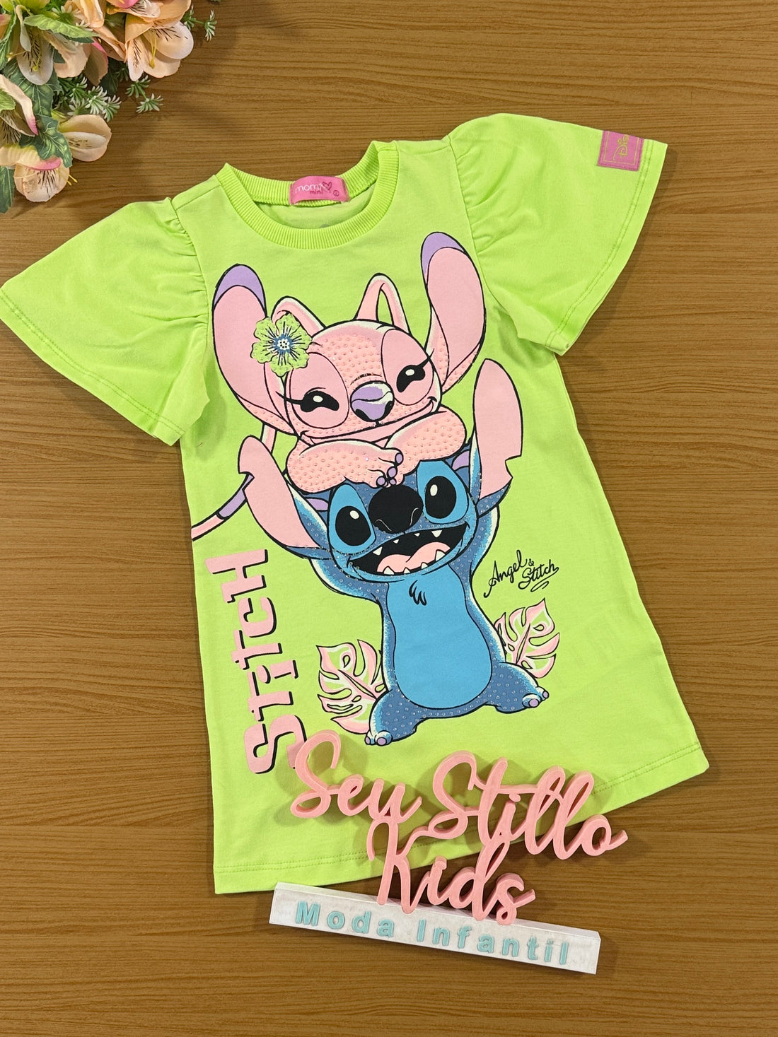 Vestido Infantil Momi Verão Verde Stitch e Angel