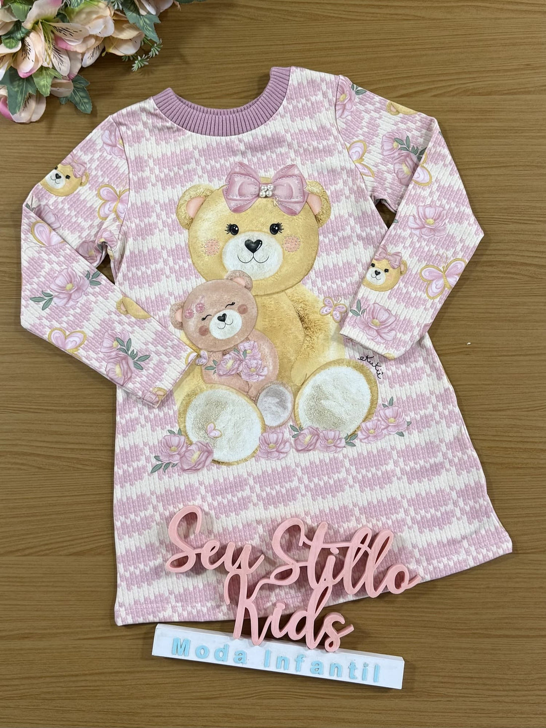 Vestido Infantil Kukiê Inverno Rosa Ursinha Carrosel