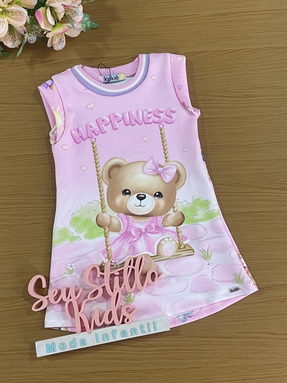 Vestido Infantil Kukie Verão Rosa Ursinha