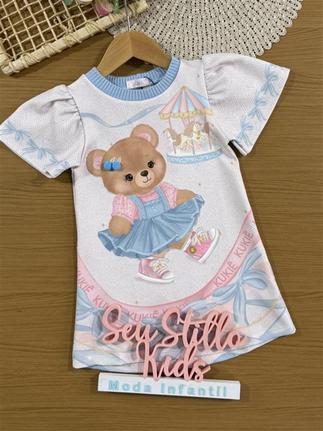 Vestido Infantil Kukie Inverno Manga Curta Ursinho Circo