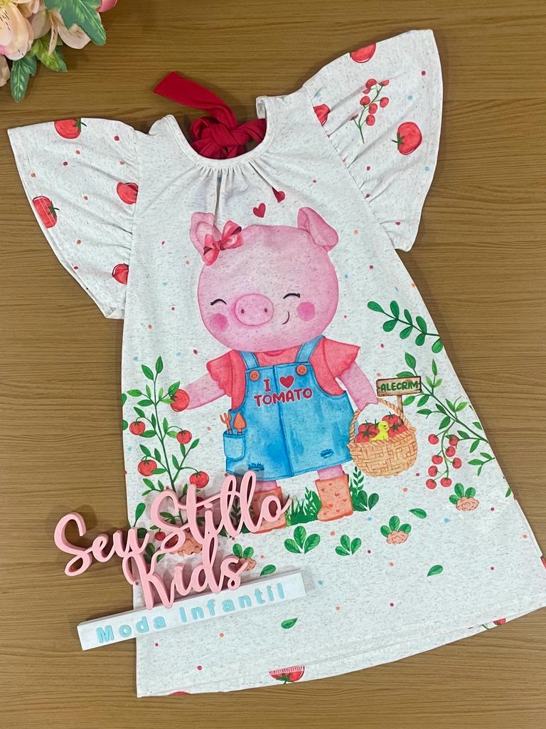 Vestido Infantil Kukie Verão Branco Ursinha Ano Novo