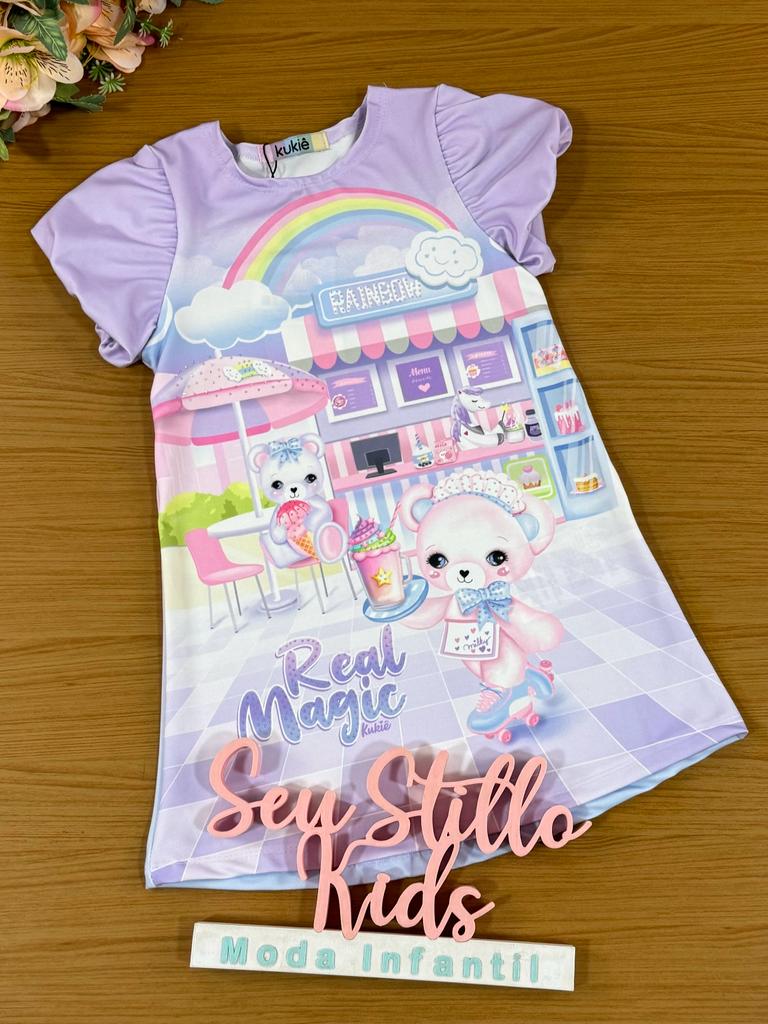 Vestido Infantil Kukie Verão Ursinha Rainbow