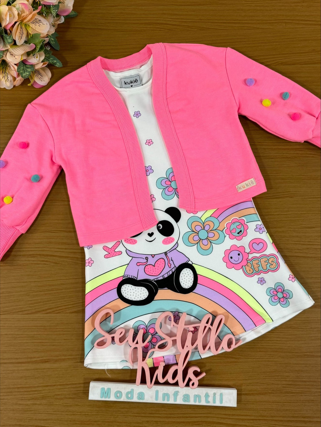 Vestido Infantil Kukie Inverno Branco Panda com Casaco