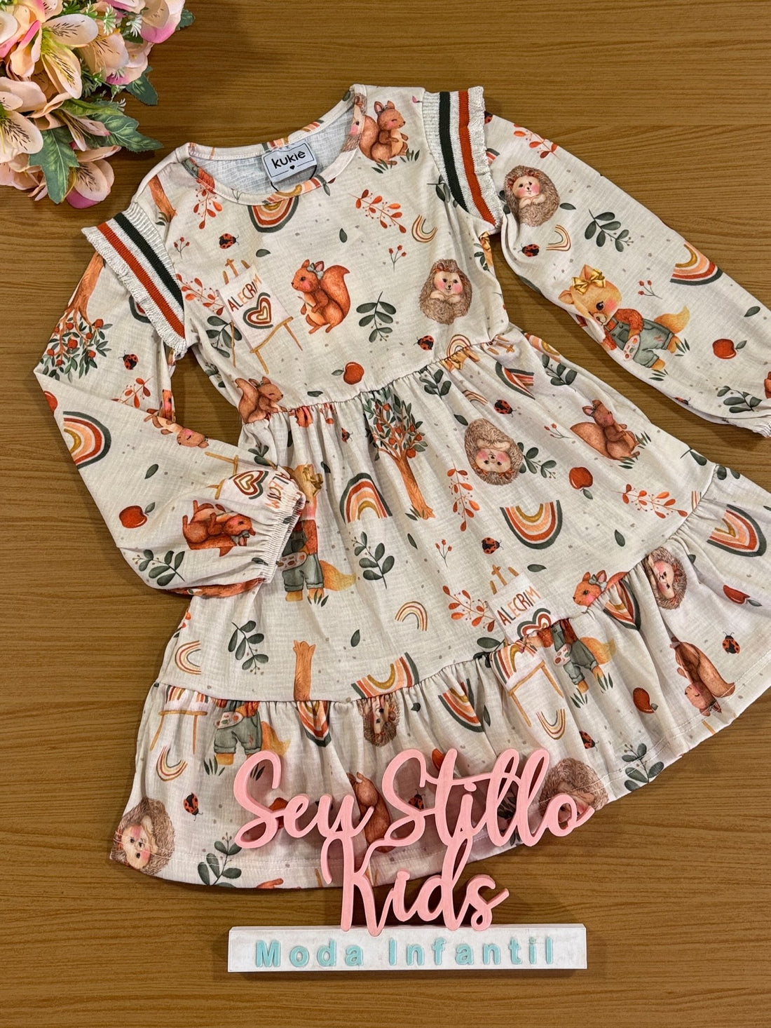 Vestido Infantil Kukie Alecrim Inverno Bichinhos