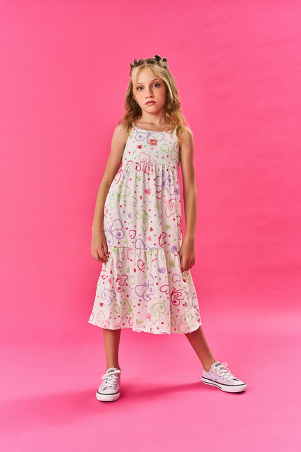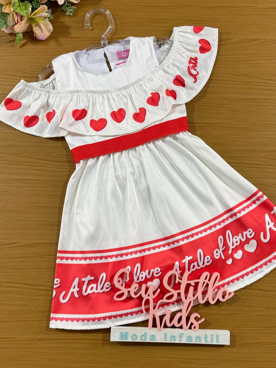 Vestido Infantil Cinti Verão Branco e Vermelho Coração Love