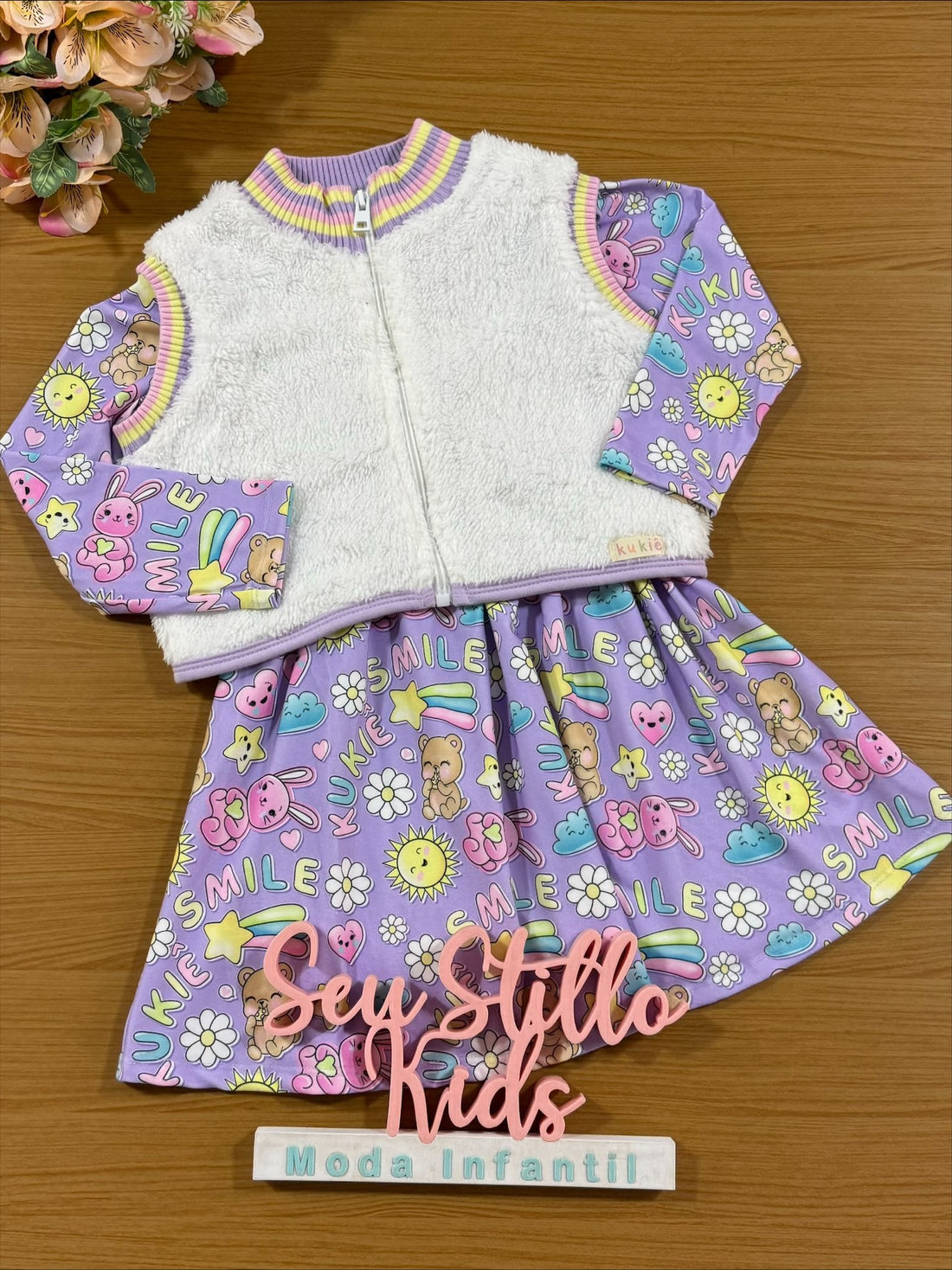 Vestido Infantil Kukie Inverno Smile com Colete Pelinhos