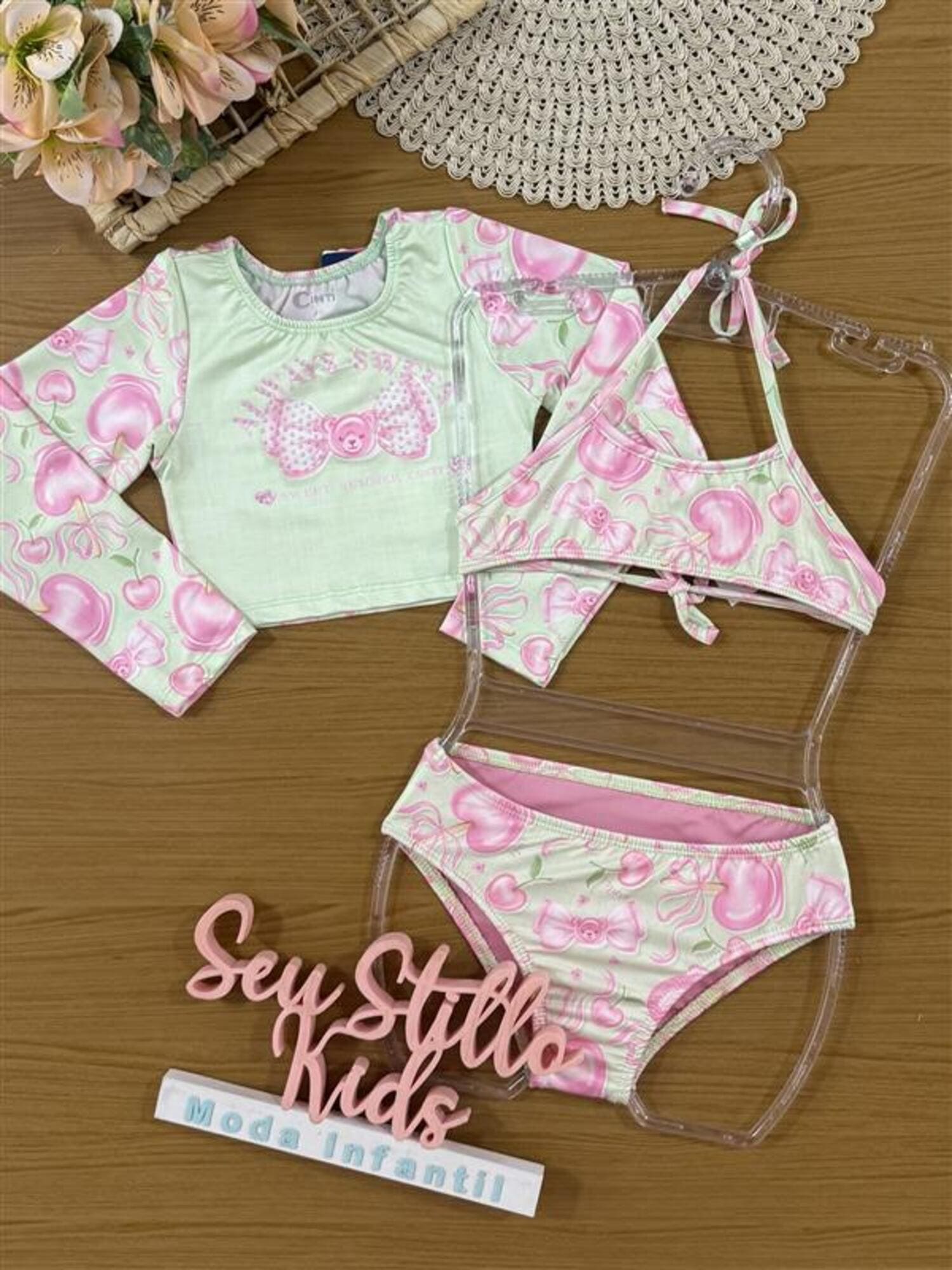 Biquíni Infantil Cinti Verão com Blusa Manga Longa Verde Docinhos