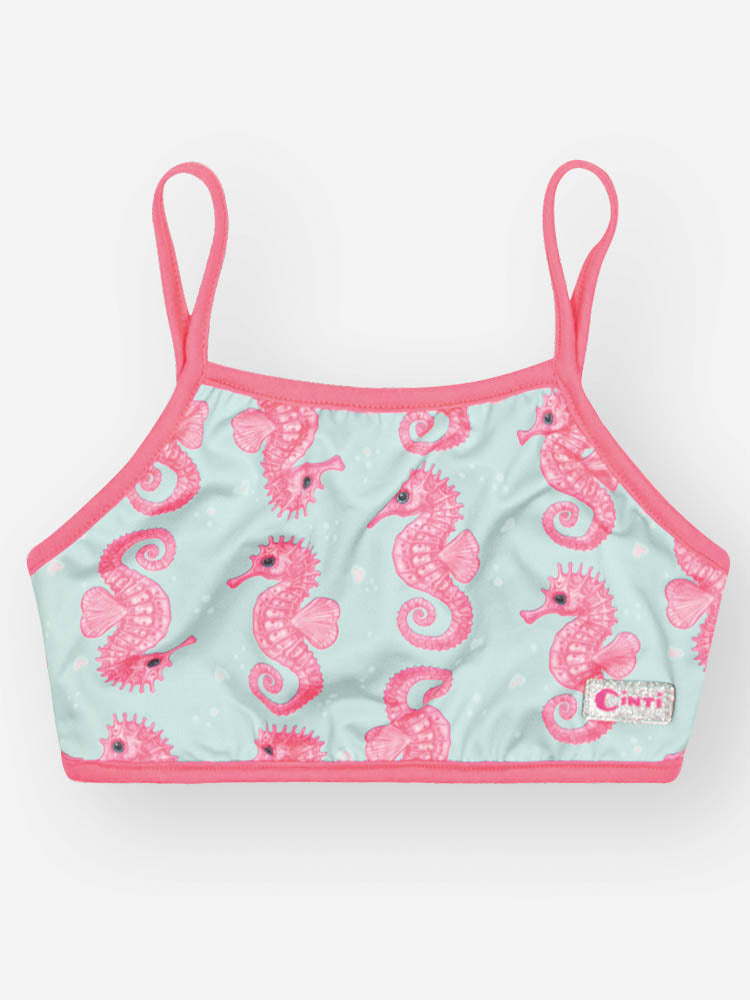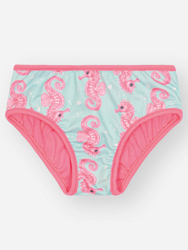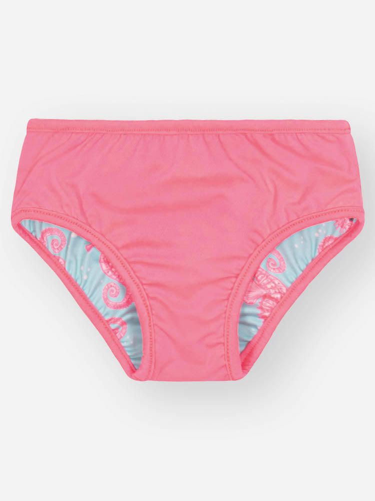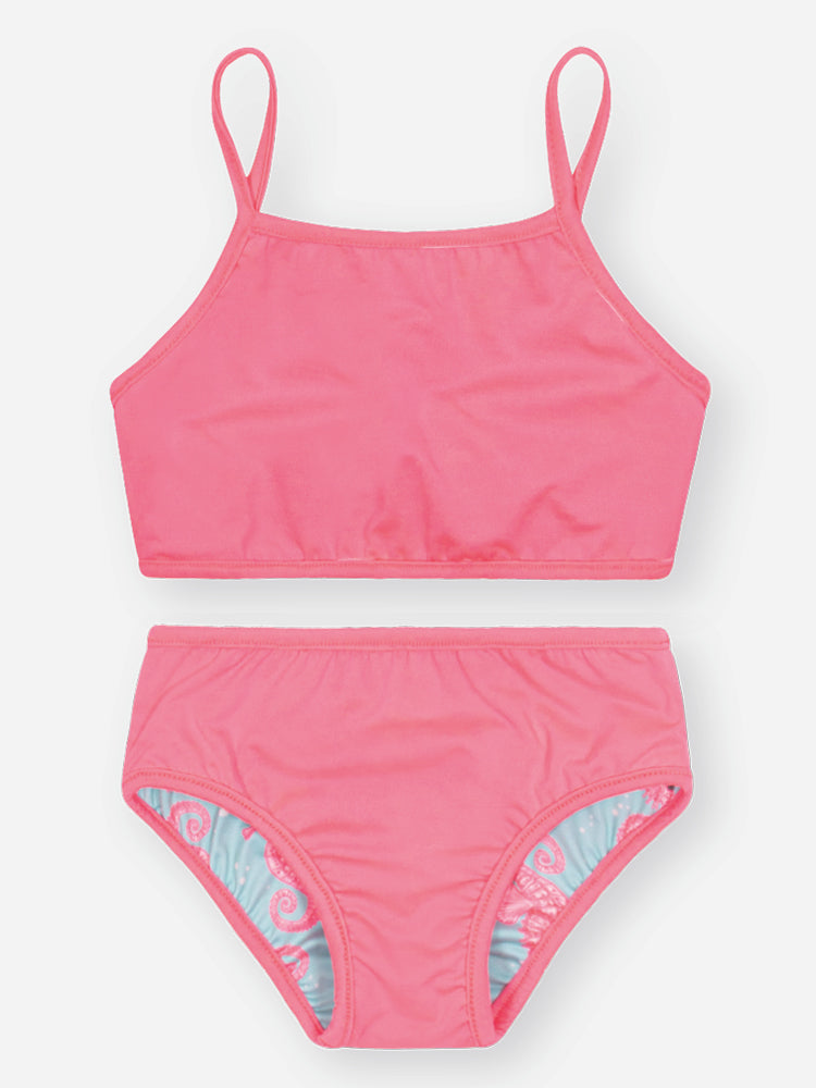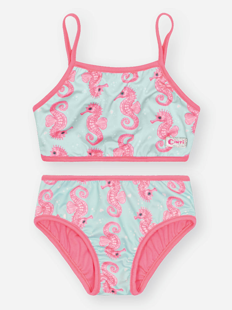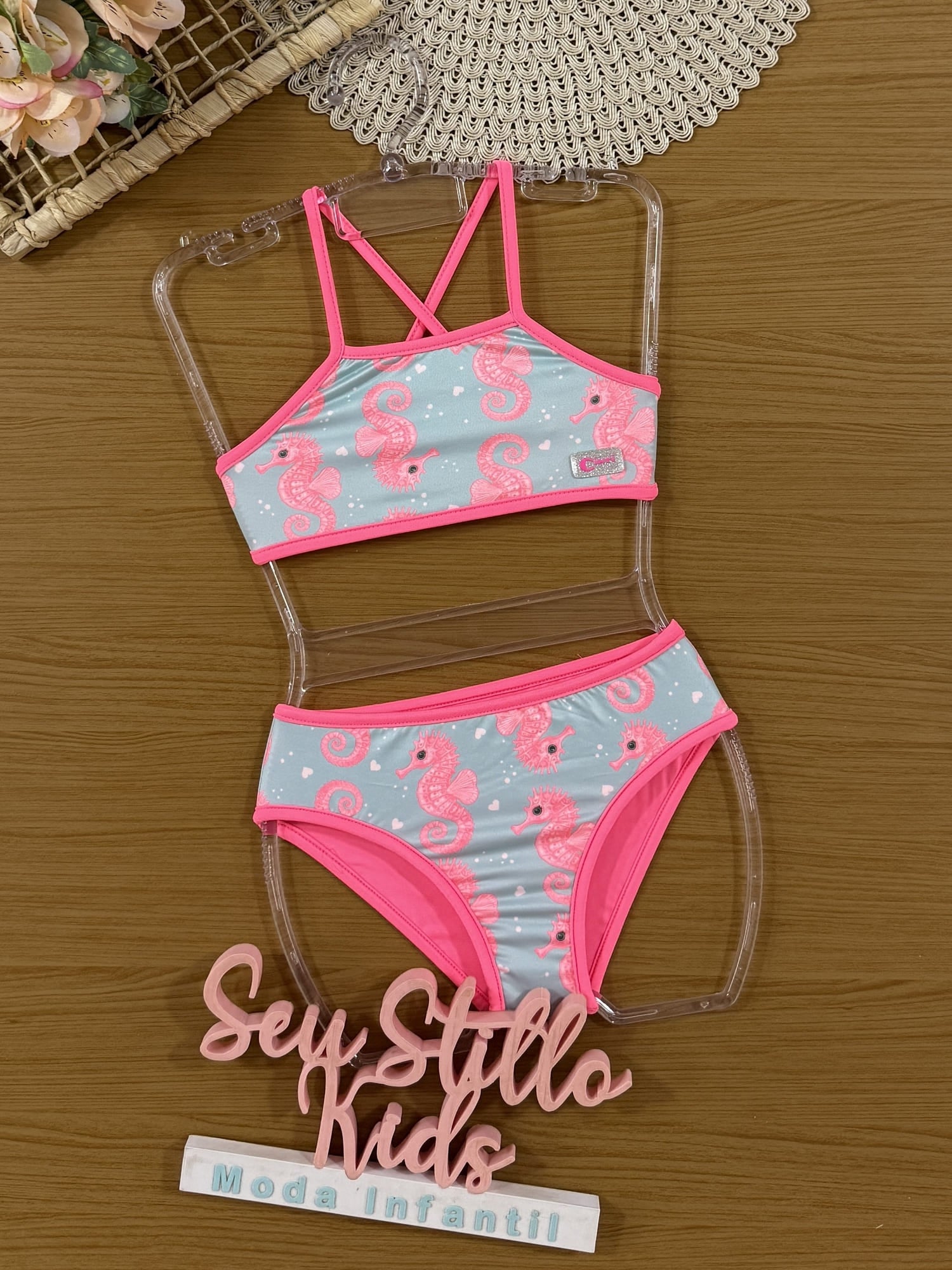 Biquíni Infantil Cinti Dupla Face Azul e Rosa Cavalo-Marinho