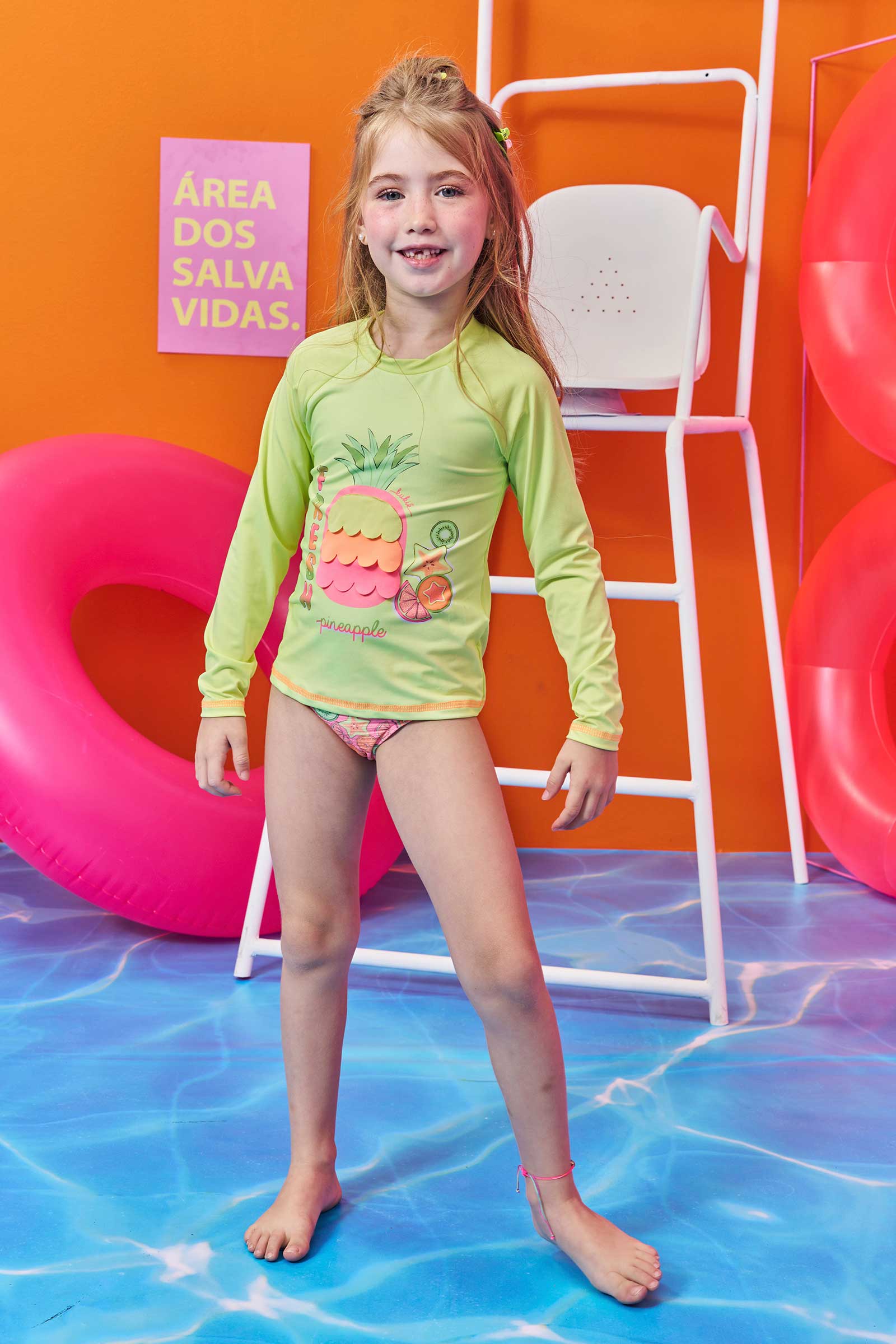 Biquini Infantil Kukie Verão com Blusa Manga Longa Abacaxi