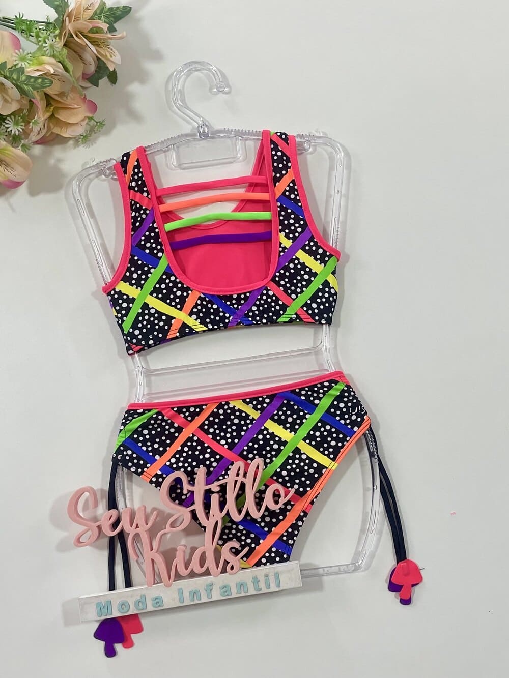 Pode ocorrer um leve sangramento na primeira lavagem, devido suas cores flúor. Siga corretamente as orientações da etiqueta do Biquíni Infantil da Siri Kids.