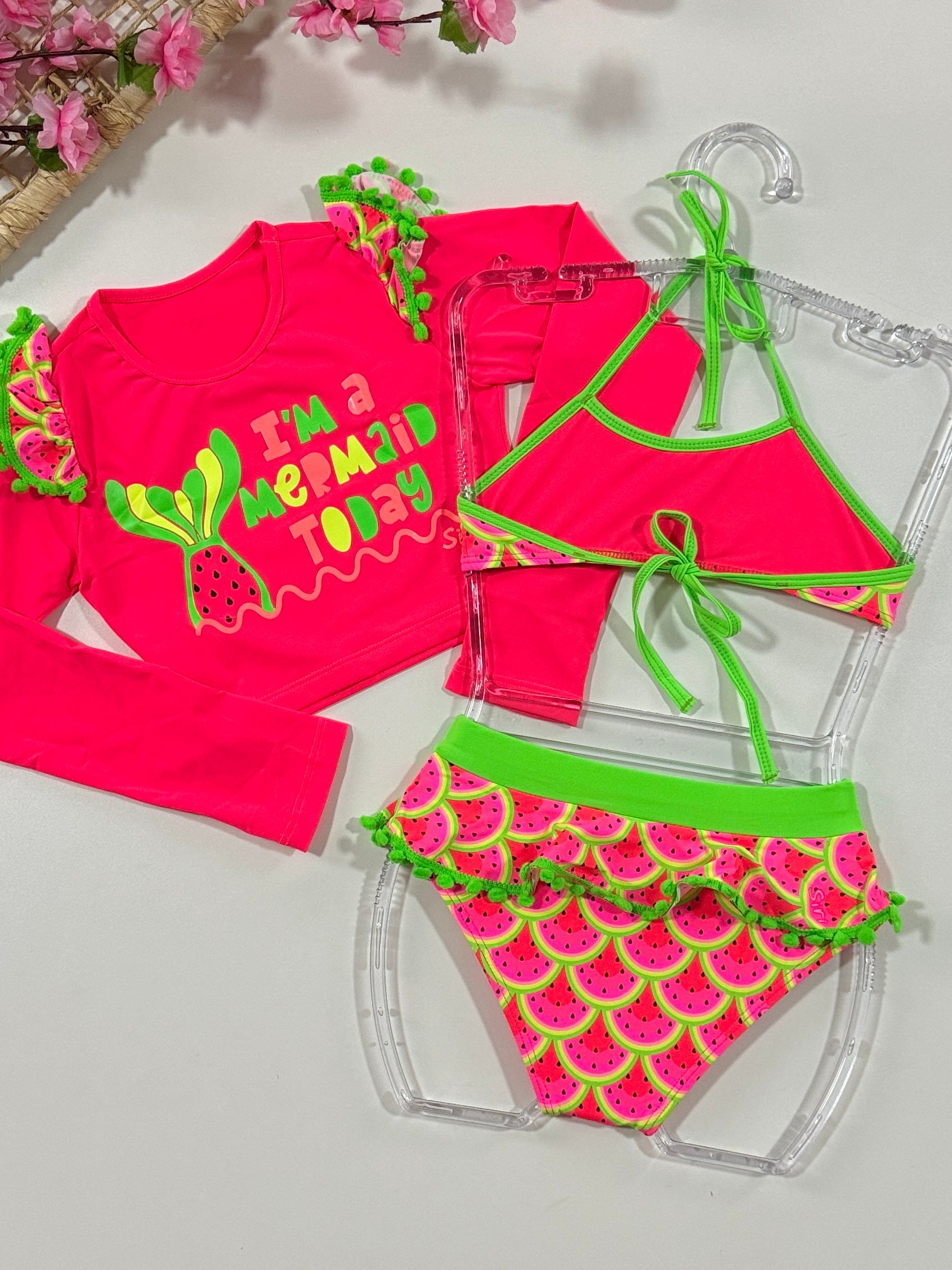 Biquíni Infantil Siri Kids com Cropped Manga Longa Sereia Melancia 39203