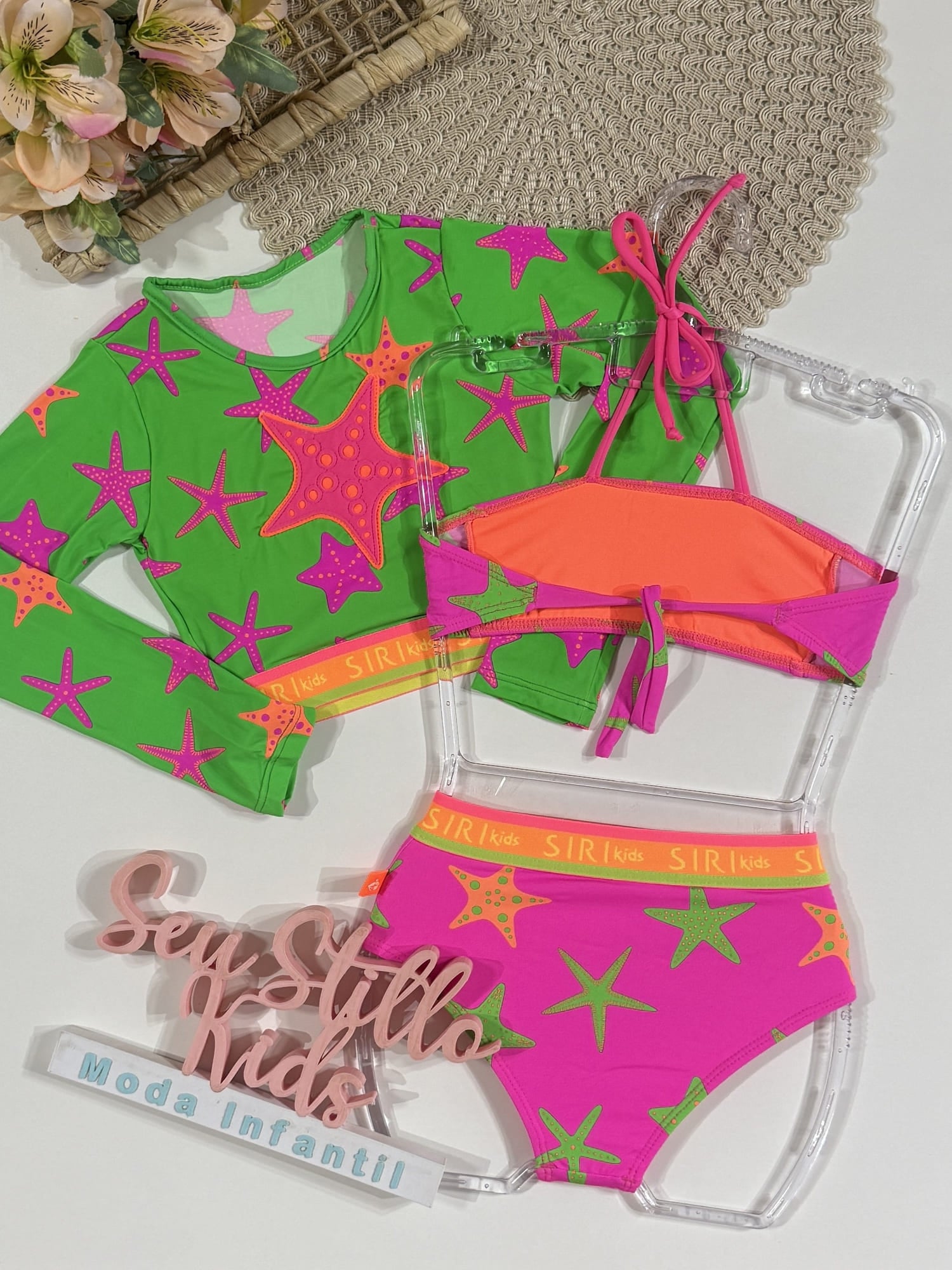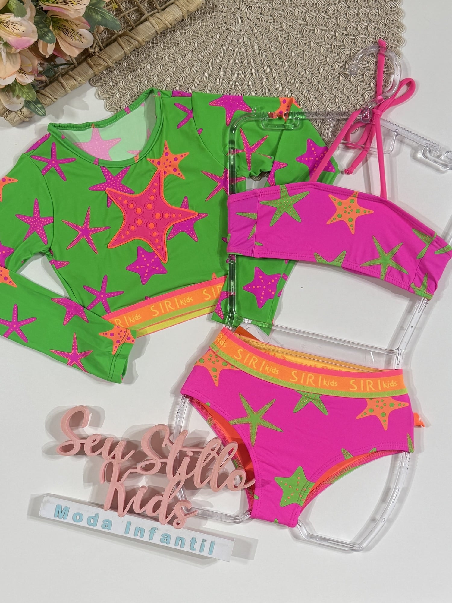 Biquíni Infantil Siri Kids Cropped Manga Longa Maria Estrelinha 40184