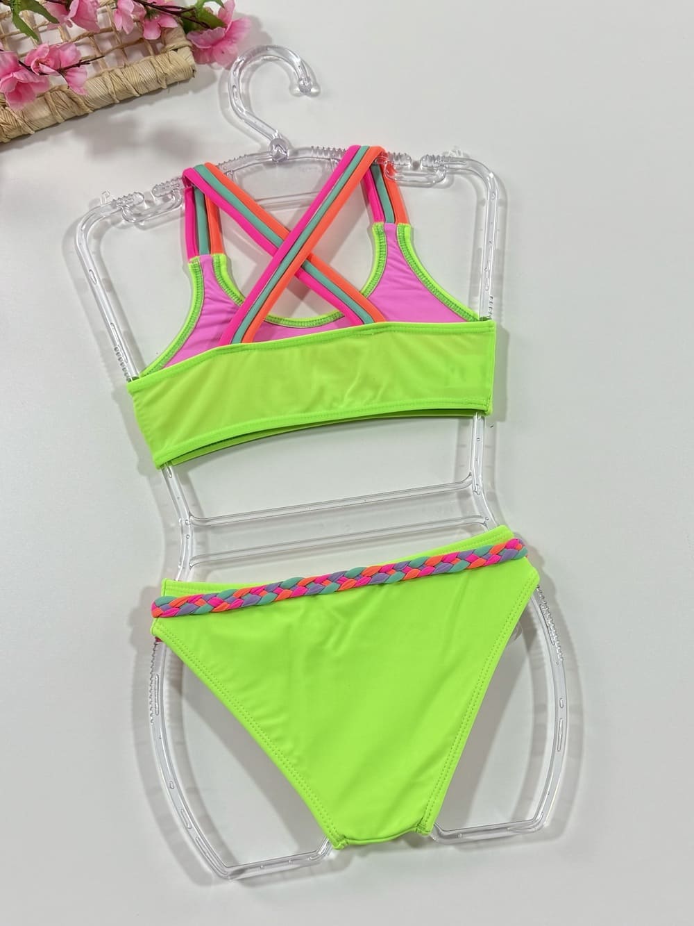 Pode ocorrer um leve sangramento na primeira lavagem, devido suas cores flúor. Siga corretamente as orientações da etiqueta do Biquíni Infantil da Siri Kids.
