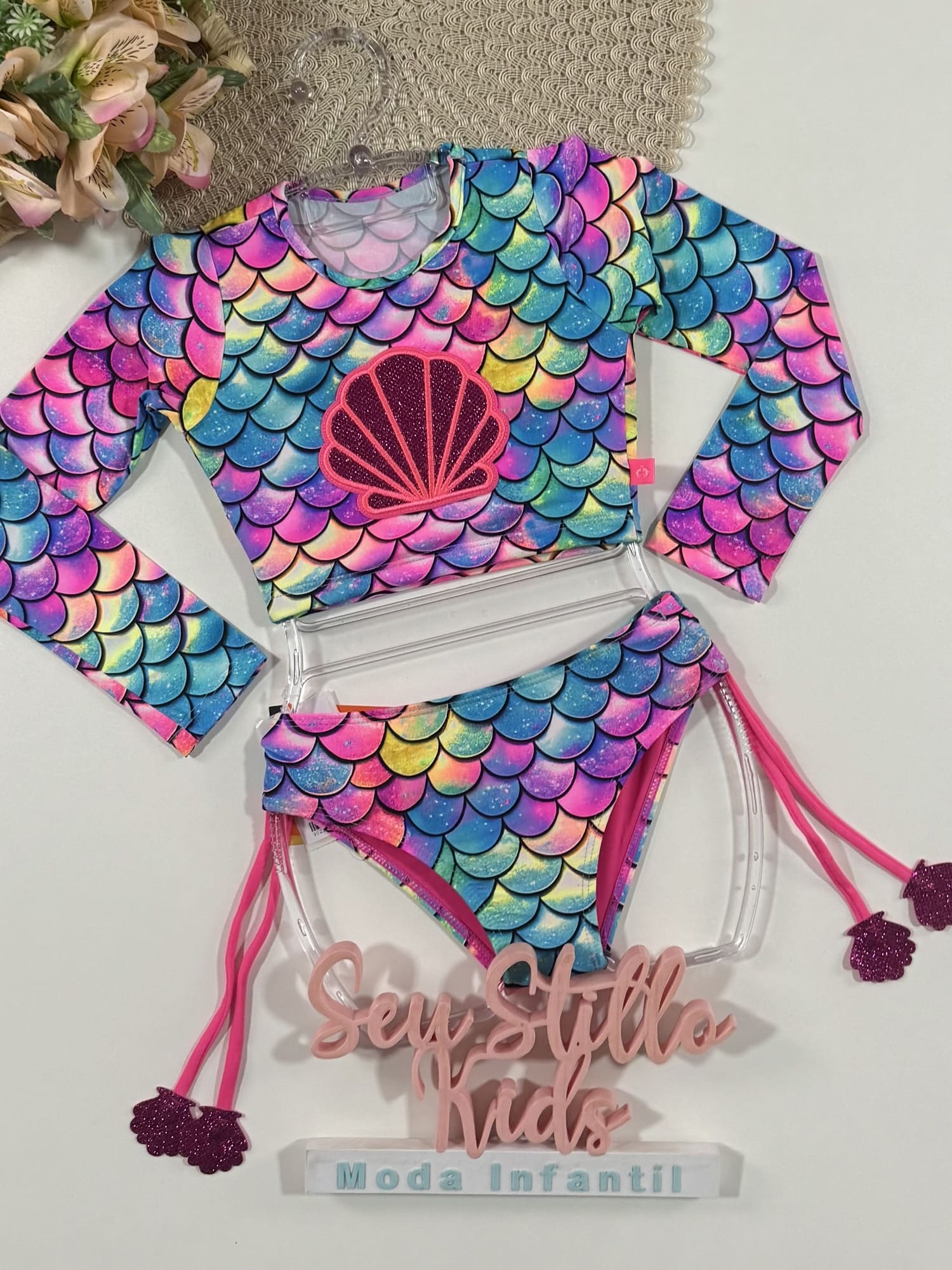 Biquíni Infantil Siri Kids Jessica Cropped Manga Longa Est Mermaid 40246