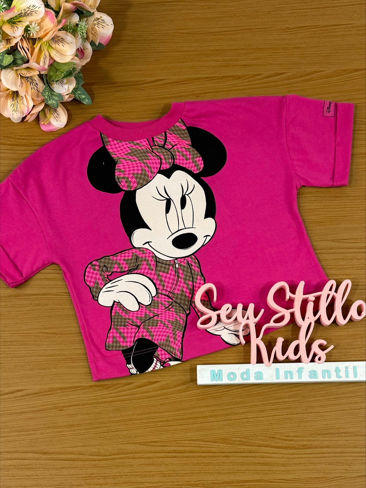 Blusa Infantil Animê Inverno Manga Curta Pink Minnie Disney