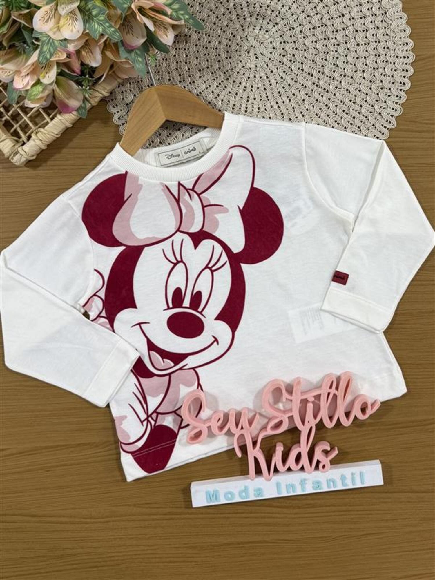 Blusa Infantil Animê Inverno Manga Longa Branca Minnie Disney