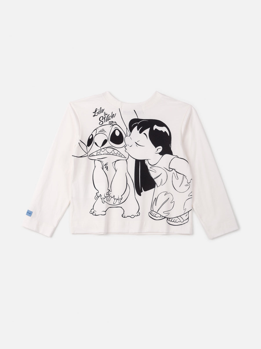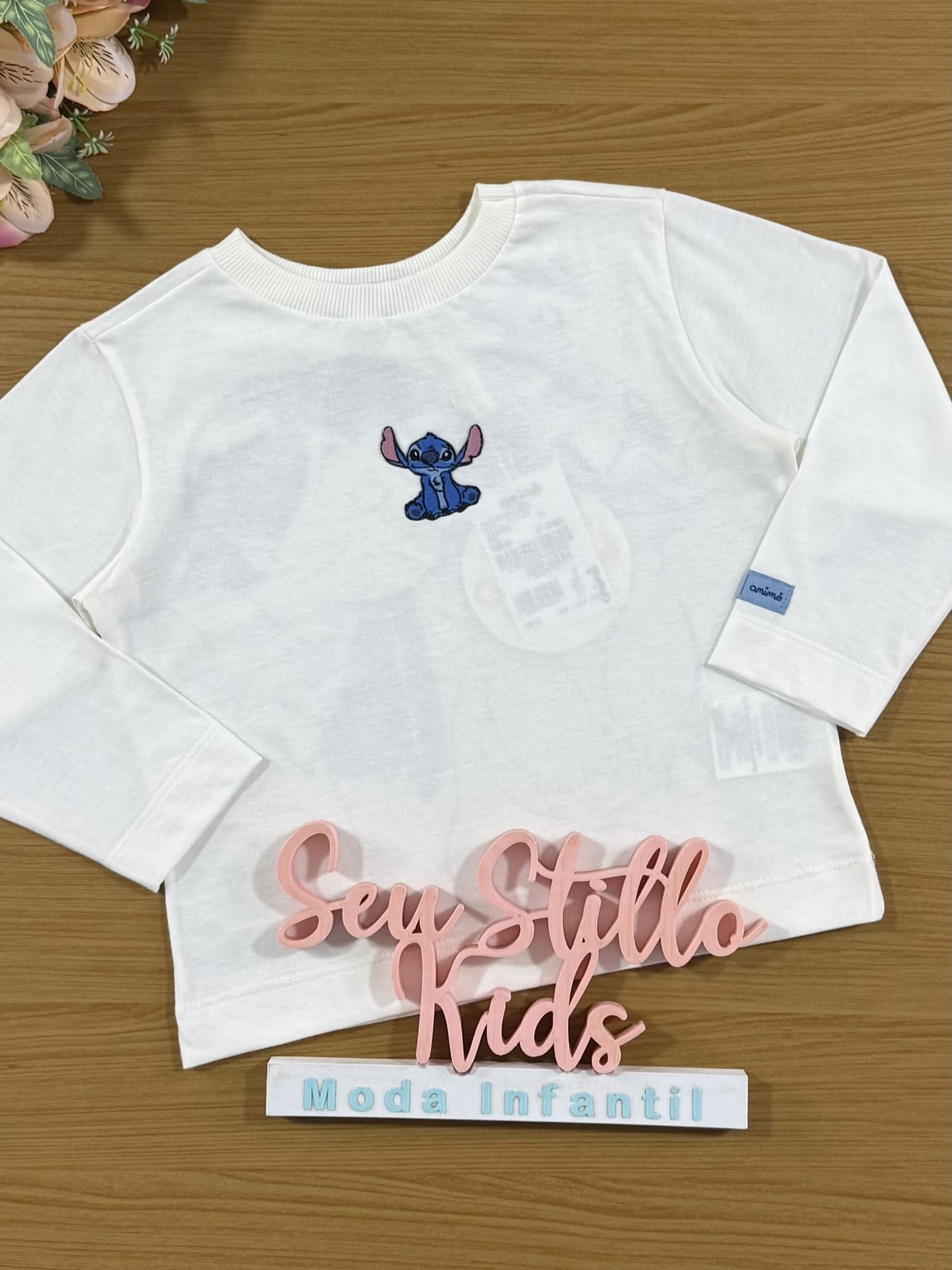 Blusa Infantil Animê Inverno Manga Longa Branca Stitch Disney