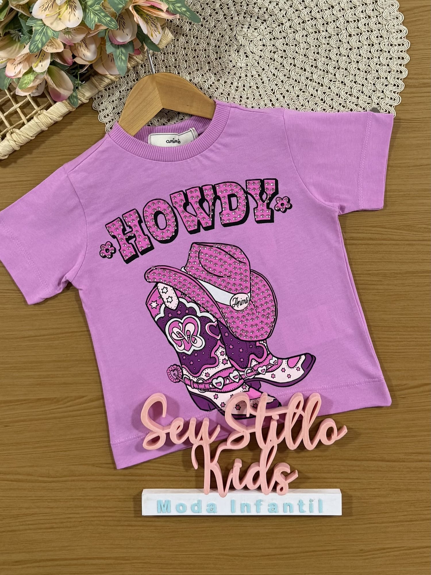 Blusa Infantil Animê Rosa Howdy com Strass