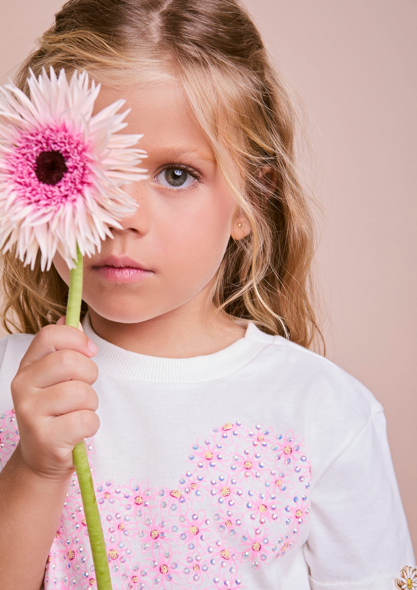 Blusa Infantil Animê Verão Branca Minnie com Strass Disney
