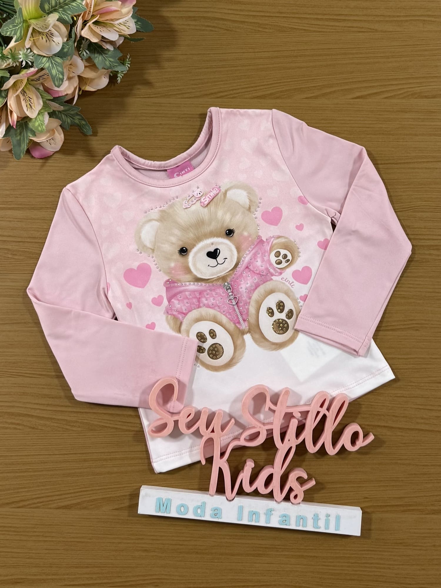 Blusa Infantil Cinti Inverno Manga longa Térmica Rosa Ursinho