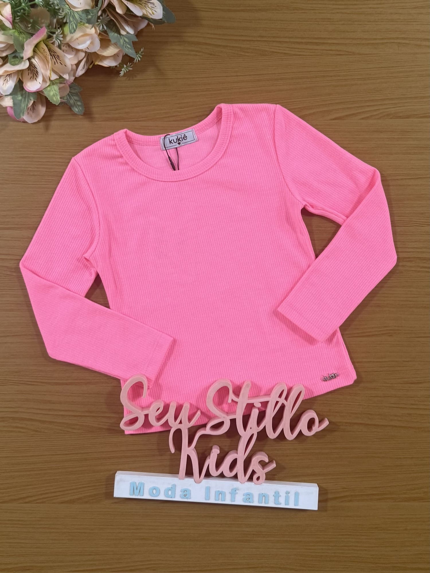 Blusa Infantil Kukie Inverno Canelada Rosa Neon