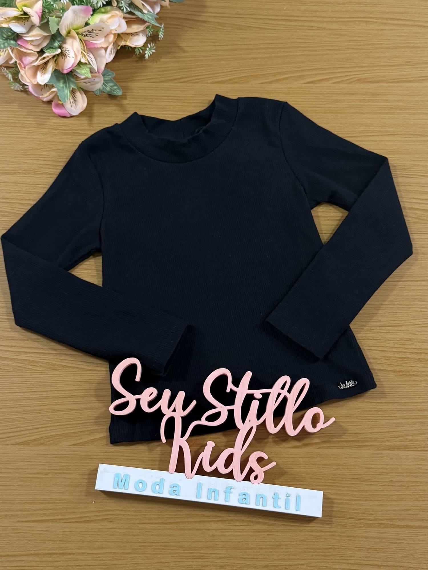 Blusa Infantil Kukie Inverno Manga Longa Estampa Lisa Preta Canelada