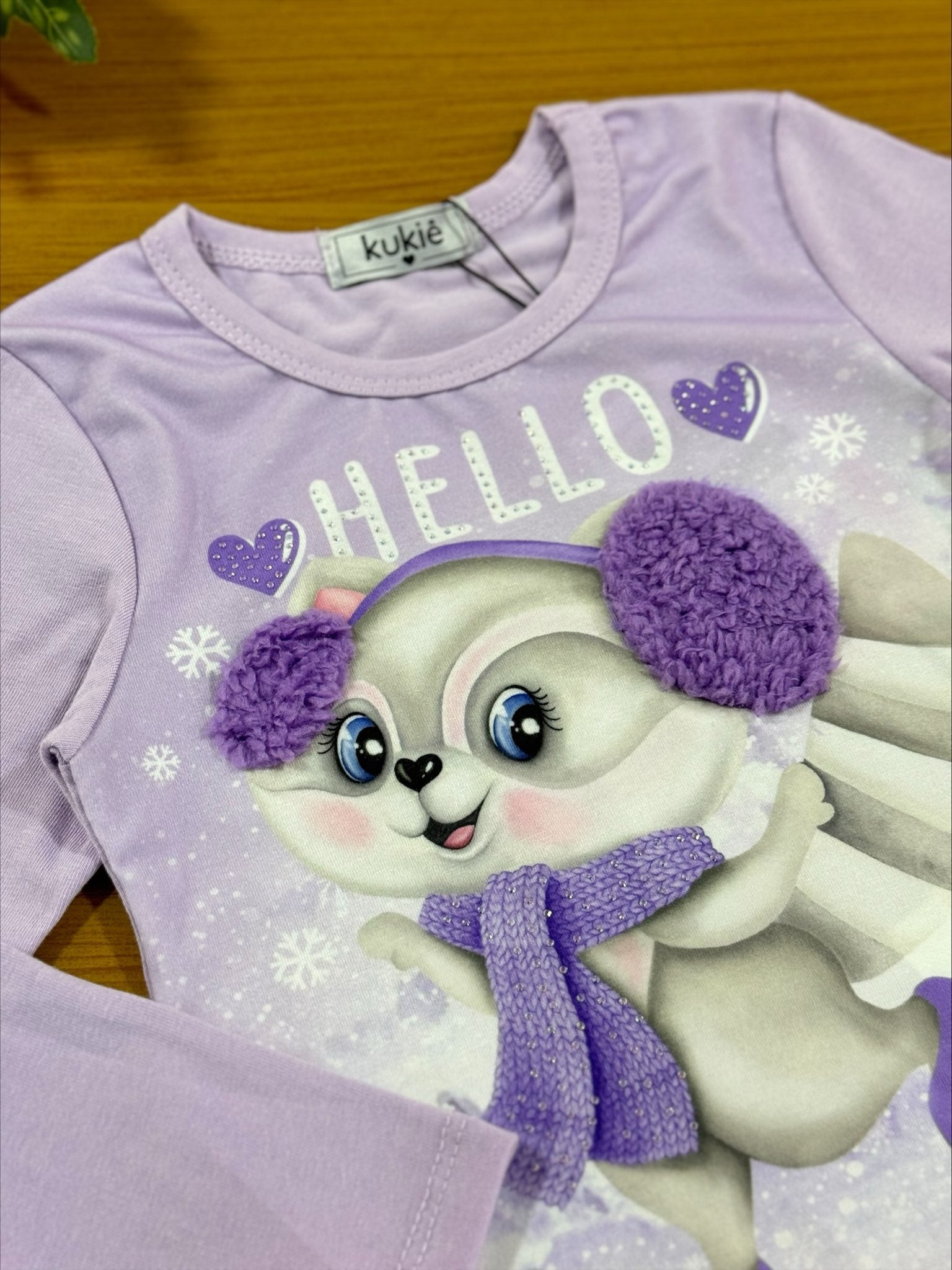 Blusa Infantil Kukie Inverno Manga Longa Lilás Guaxinim