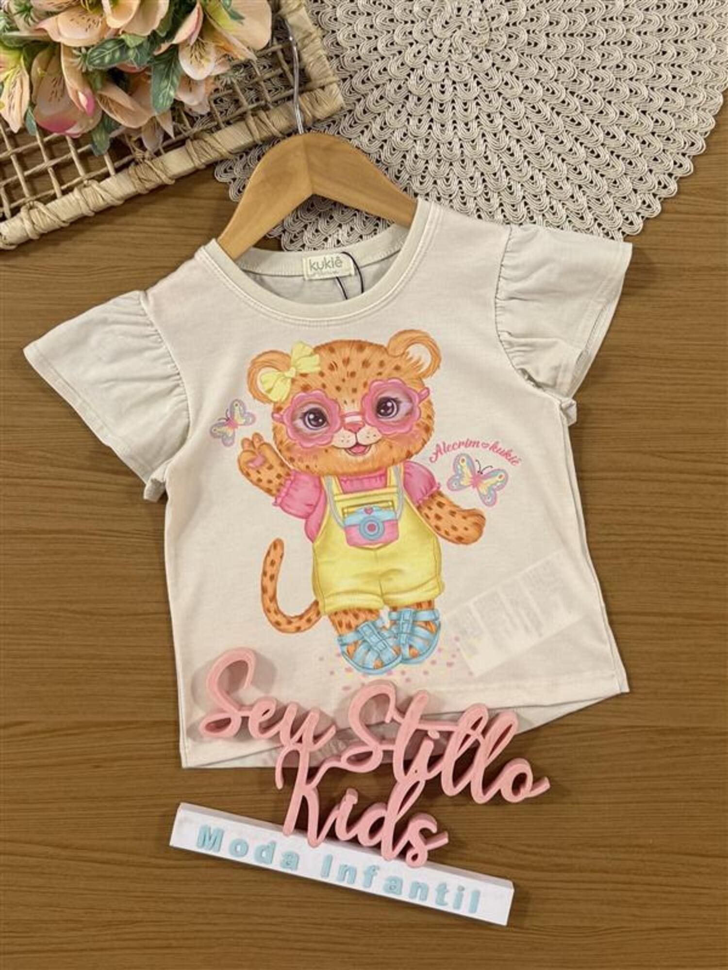 Blusa Infantil Kukiê Verão Bege Oncinha