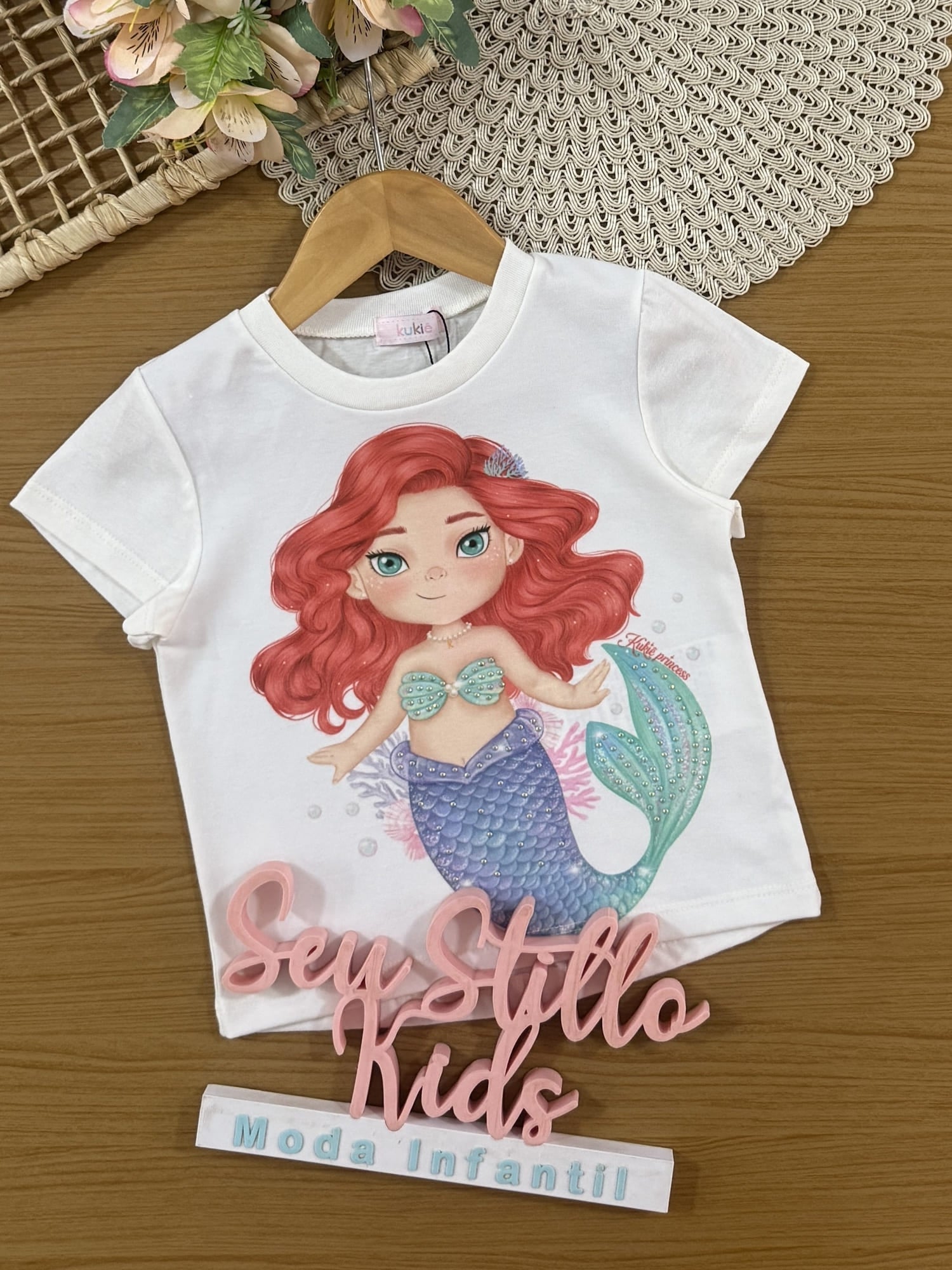 Blusa Infantil Kukiê Verão Branca Princesa Ariel