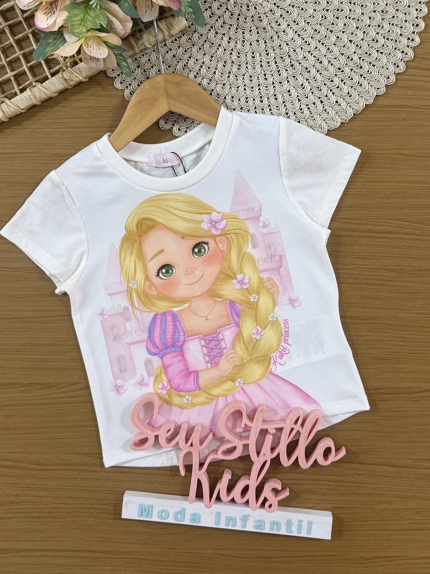 Blusa Infantil Kukiê Verão Branca Princesa Rapunzel
