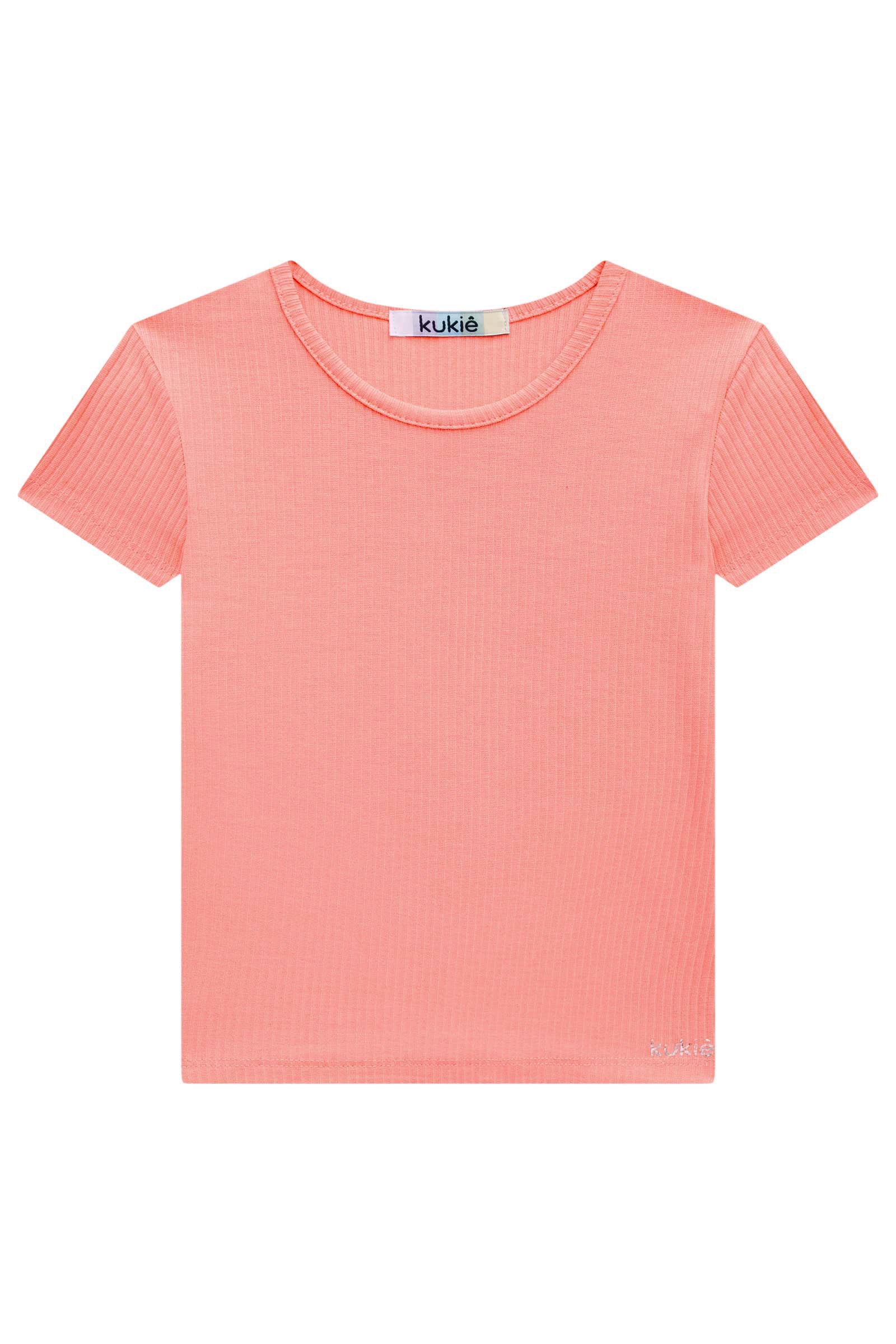 Blusa Infantil Kukie Verão Canelada Coral Neon
