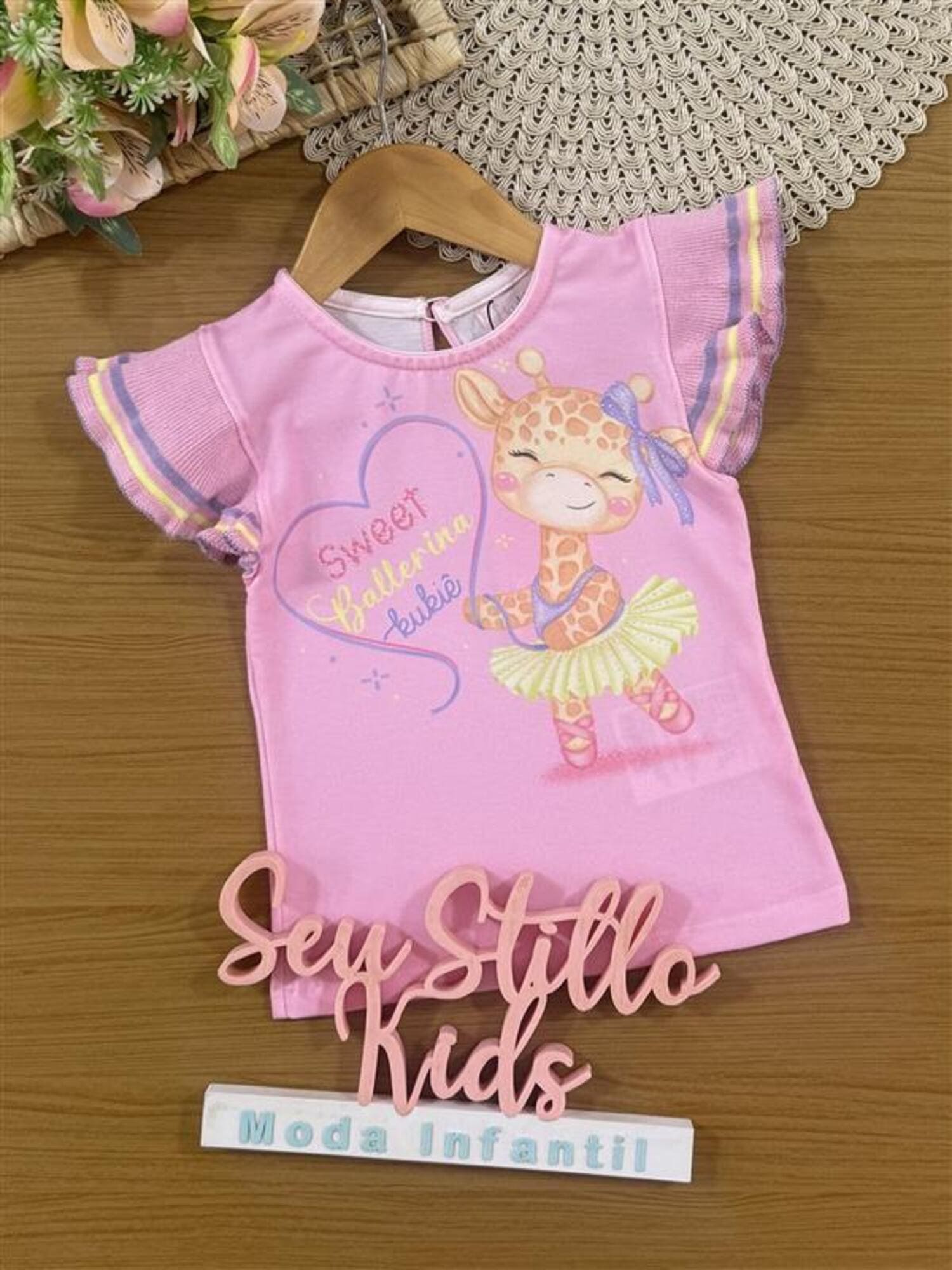 Blusa Infantil Kukiê Verão Rosa Girafinha Bailarina
