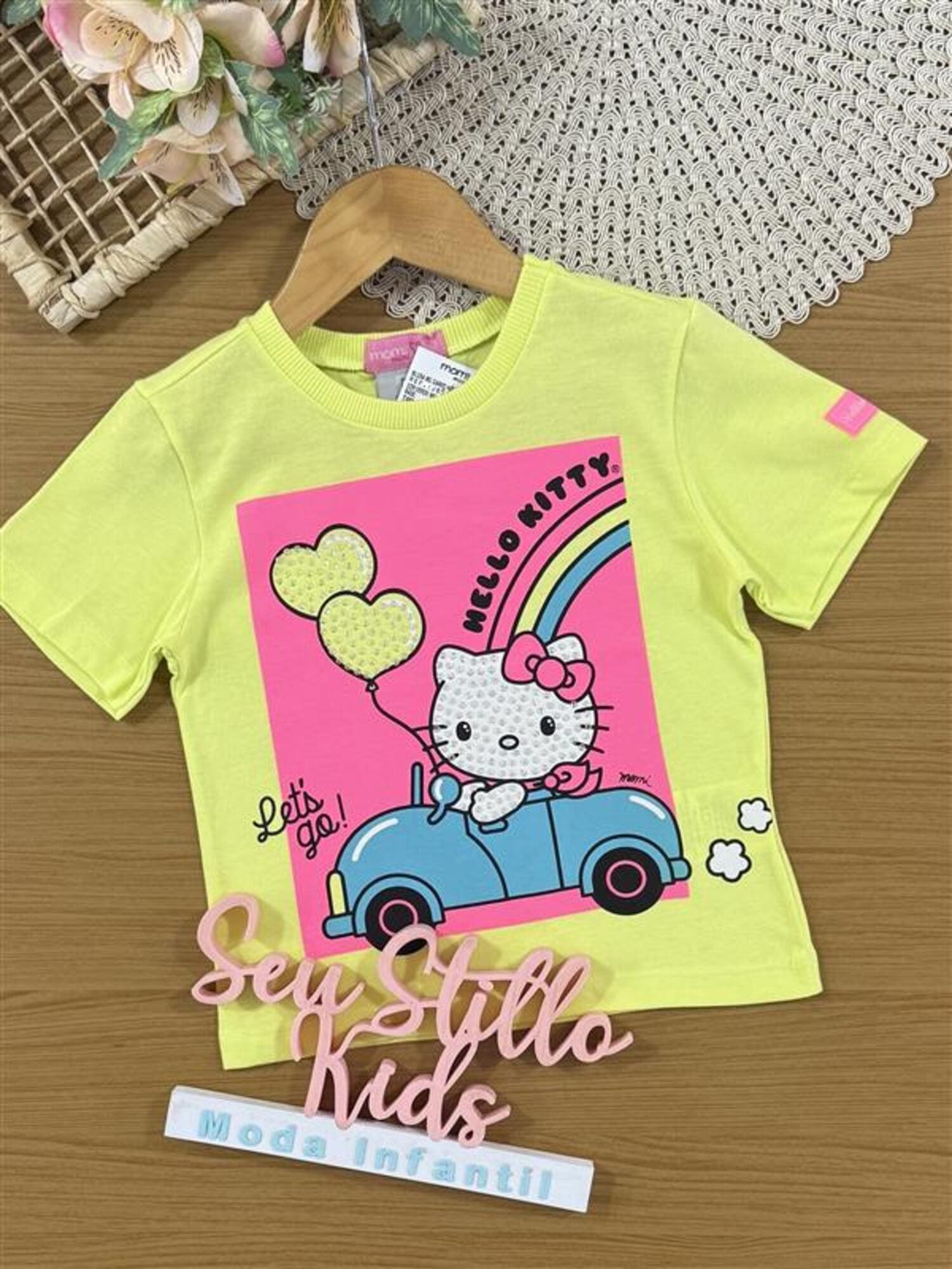 Blusa Infantil Momi Verão Amarelo Hello Kitty com Strass