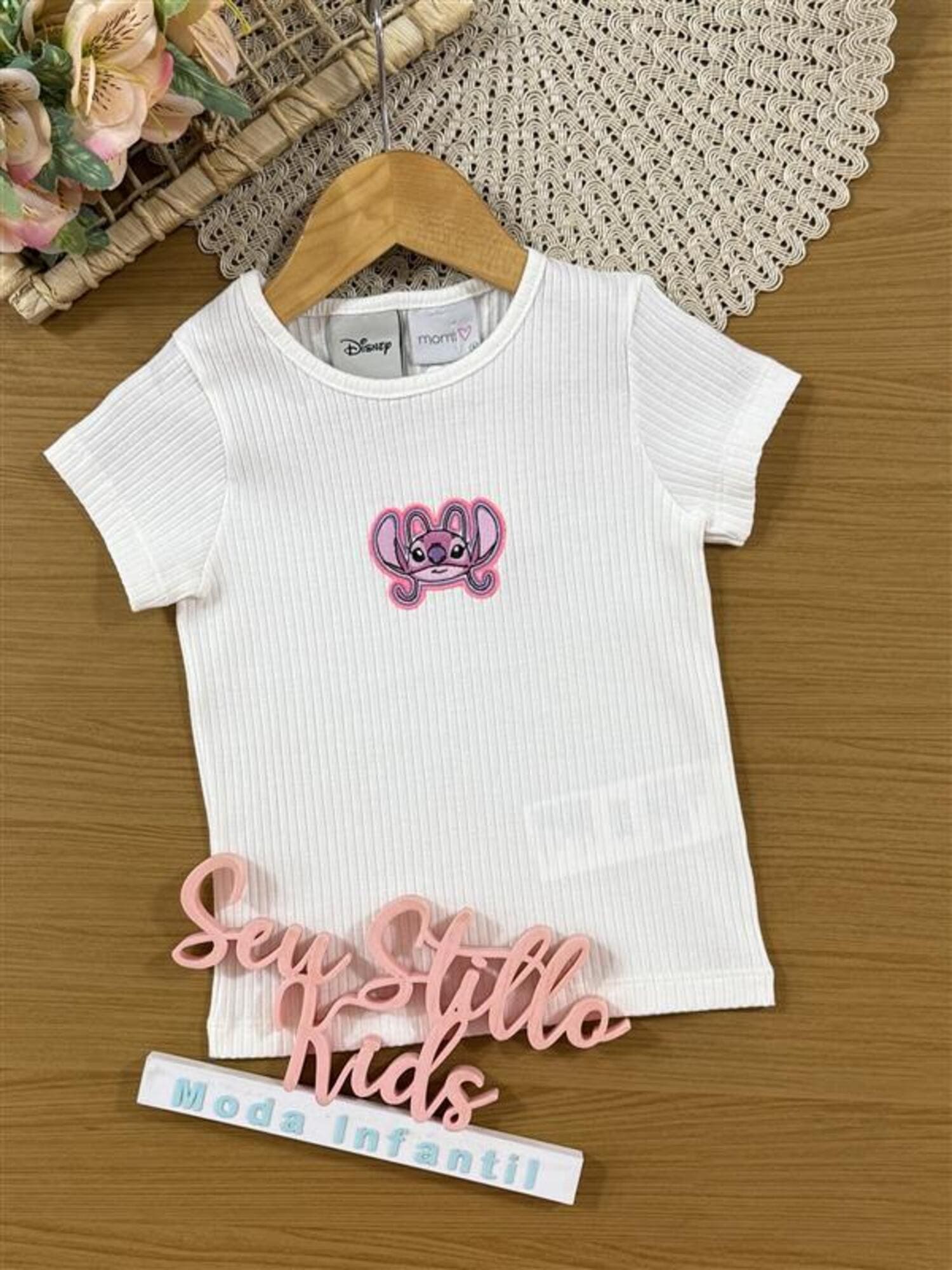 Blusa Infantil Momi Verão Branca Stitch Disney