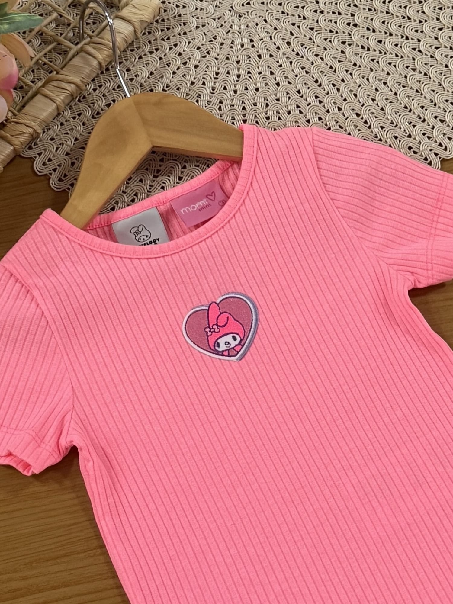 Blusa Infantil Momi Verão Rosa Neon My Melody