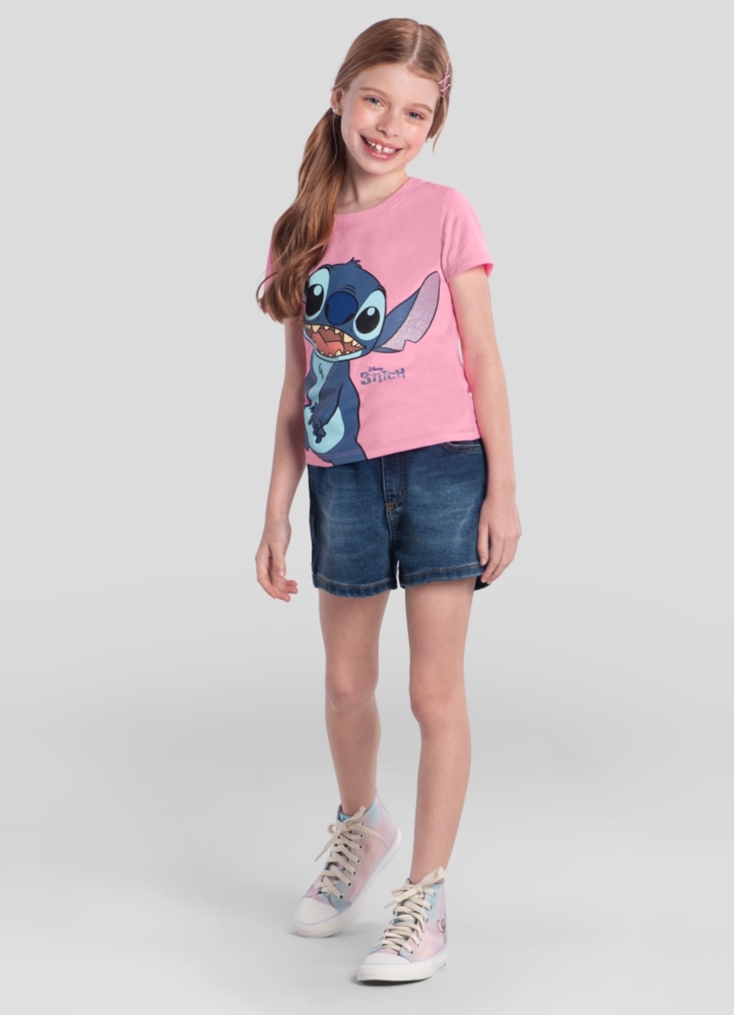 Blusa Infantil Stitch Rosa Brandili Disney