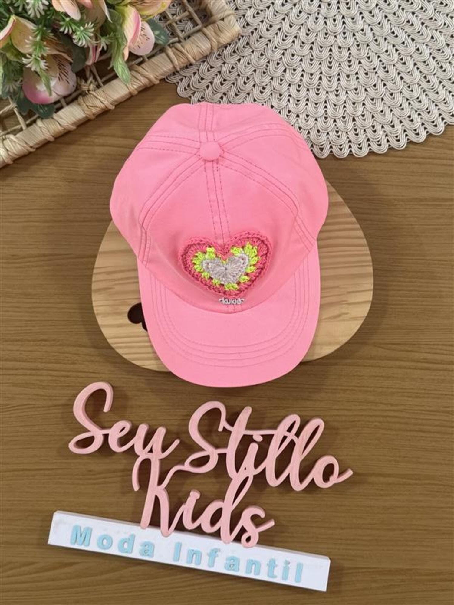 Boné Infantil Kukiê Verão Rosa Coração Tricô