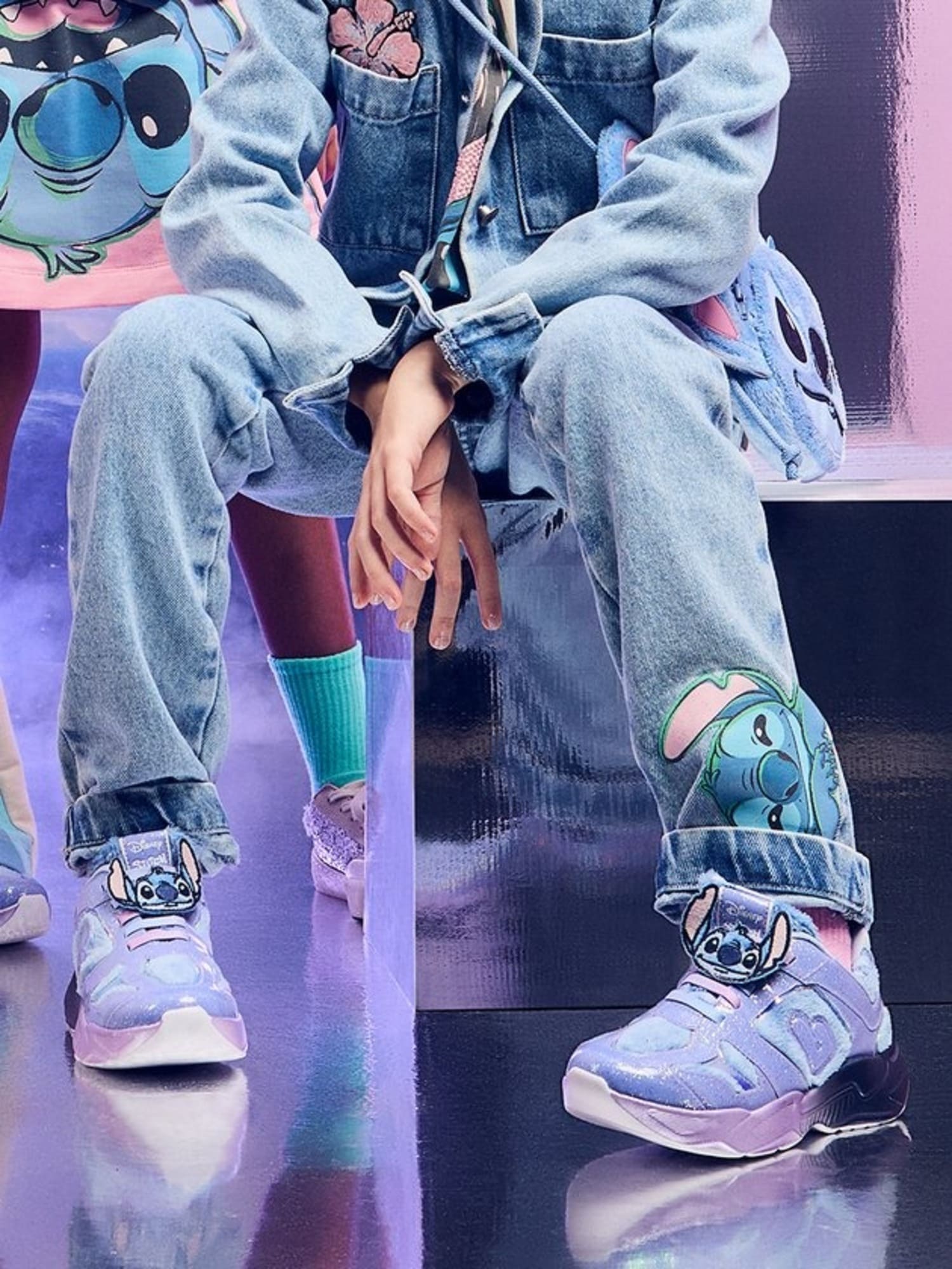 Calça Infantil Animê Inverno Jeans Stitch com Strass Disney