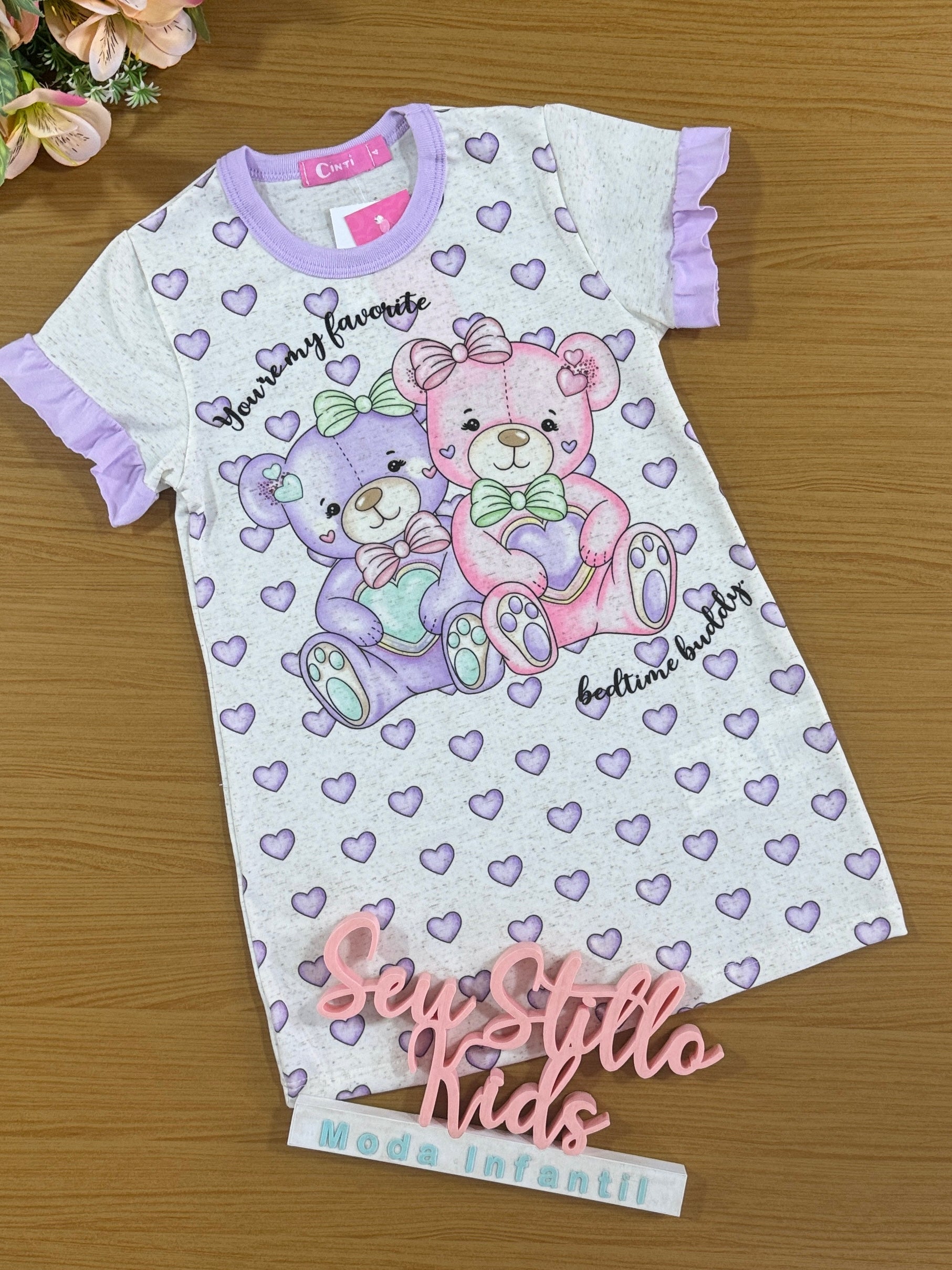 Camisola Infantil Cinti Verão Lilás Ursinhos