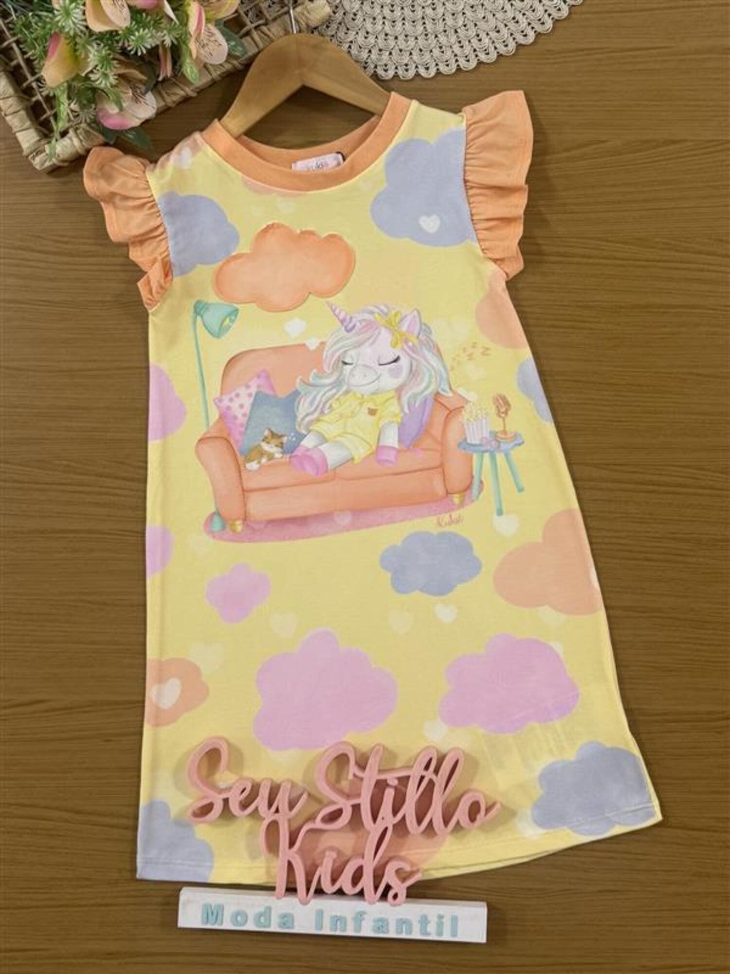 Camisola Infantil Kukiê Verão Amarela Unicórnio Hora de Dormir