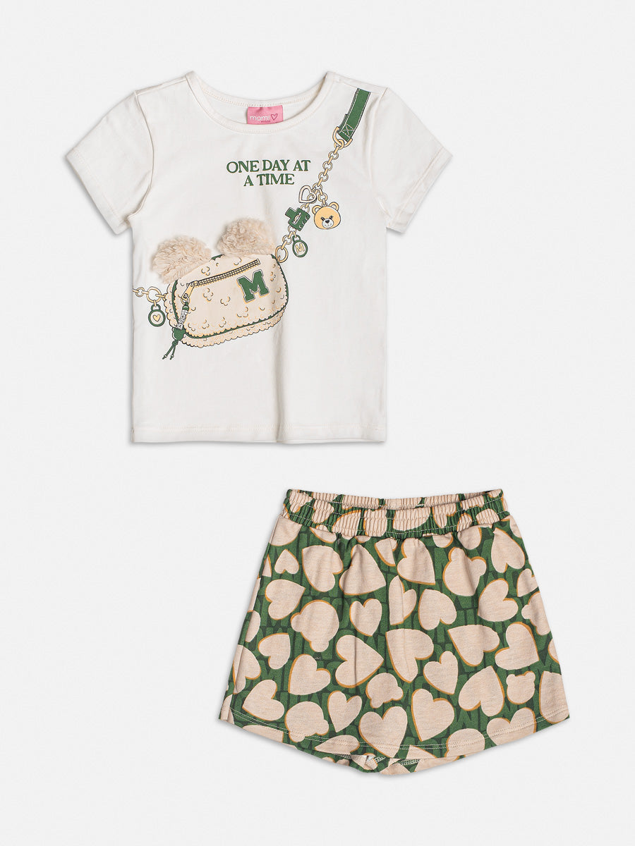 Conjunto Infan. Momi Inverno Shorts Saia e Blusa Manga Curta Bolsinha